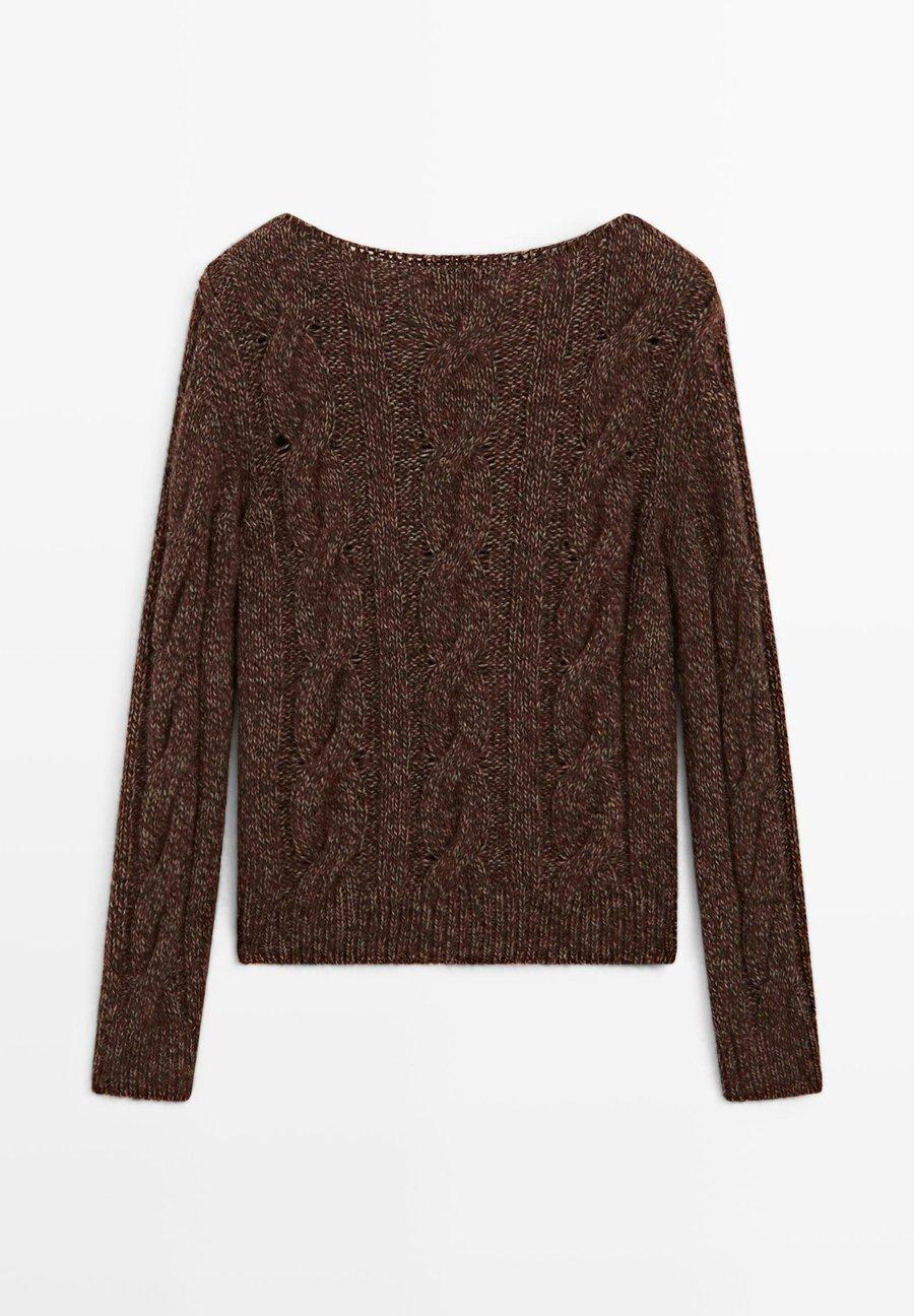 Свитер. Ребристая отделка. Длинные рукава. Плетеная отделка. Вырез-лодочка. Вырез: ЛодочкаМатериал и уход