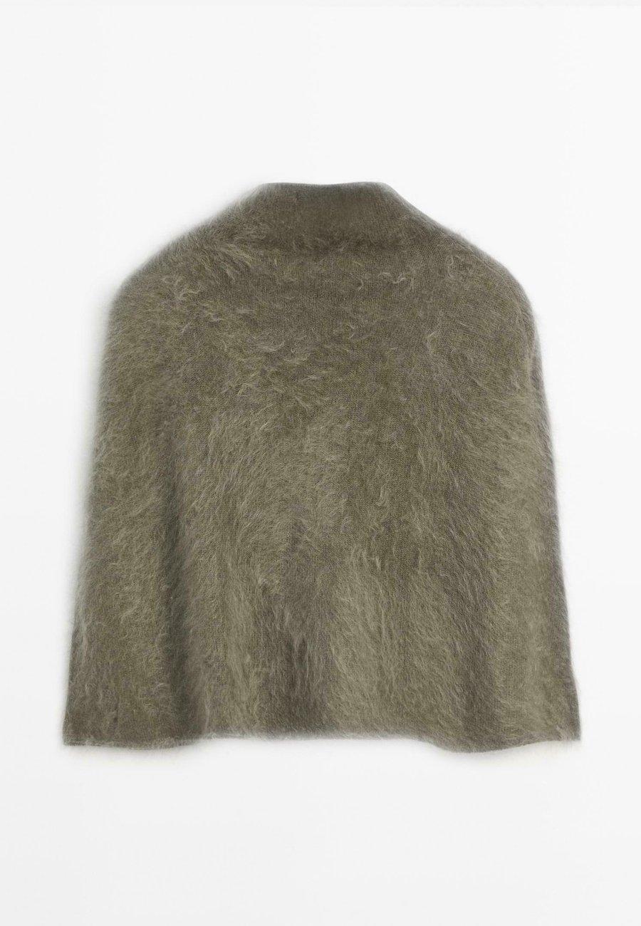 Мягкая ткань, приятная на ощупь. Высокий воротник. Матовая отделка. Накидка из 100% кашемира. Воротник: стоячий.Материал и уход