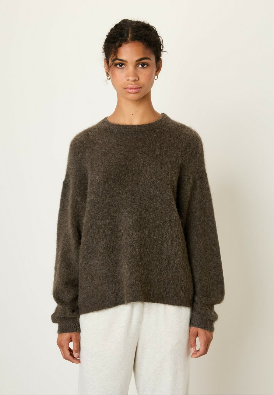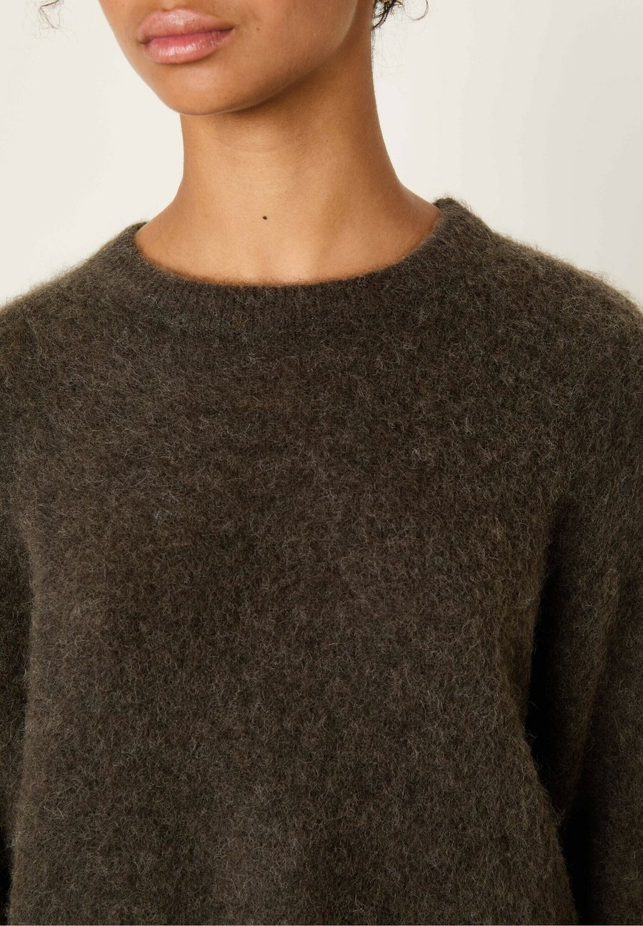 Пуловер с длинными рукавами и круглым воротником. Форма воротника: Круглый воротник. Состав: 60% альпака, 37% полиамид, 3% эластан. Вырез горловины: Круглый.Материал и уход
