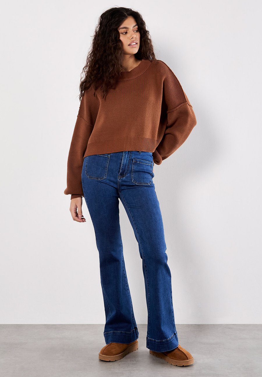 Этот уютный джемпер, выполненный из трикотажа средней плотности в рубчик, имеет слегка укороченный крой, классический круглый вырез и рукава-фонарики. Вырез: КруглыйМатериал и уход