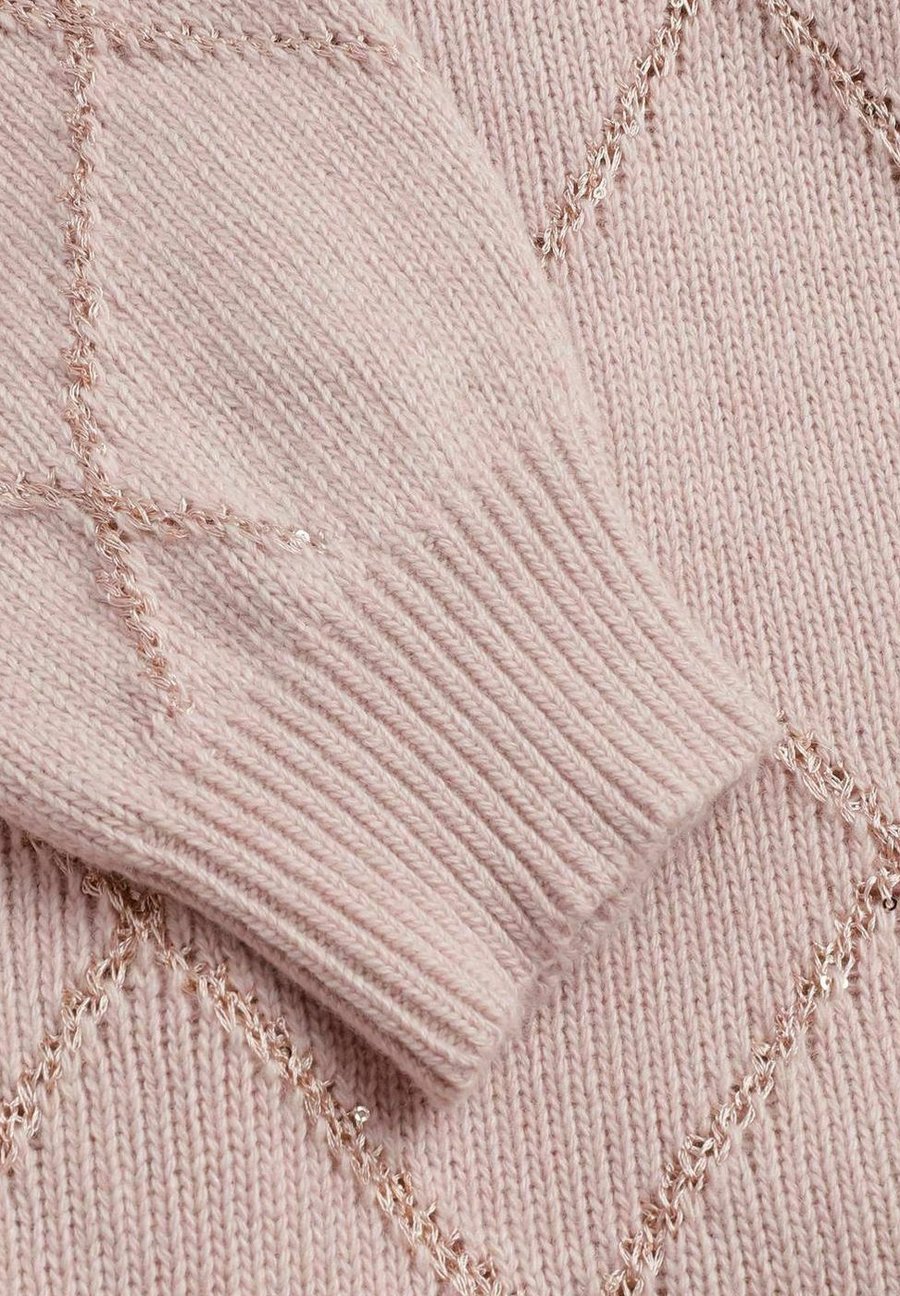 Элегантный пуловер розового цвета с нежным клетчатым узором, дополненный люрексом для изысканного блеска. Пуловер с круглым вырезом и длинными рукавами сочетает в себе комфорт и стиль. Изящный дизайн делает его универсальным предметом гардероба, идеально подходящим как для повседневной, так и для нарядной одежды по любому случаю. - клетчатый узор с добавлением люрекса - длинные рукава - круглый вырез горловиныМатериал и уход