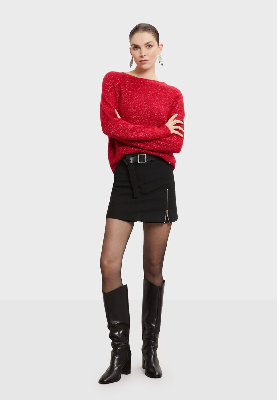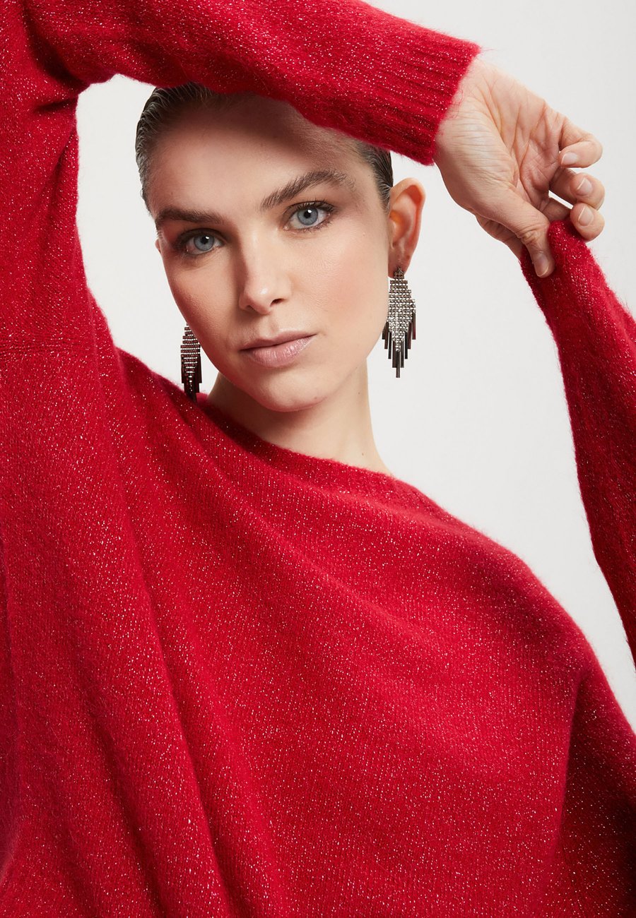 Свитер с длинными рукавами, изготовленный в Италии, с легким мерцанием. Круглый вырез и свободный крой придают ему женственный, непринужденный вид. Ребристые манжеты и нижний край обеспечивают аккуратную отделку. Элегантная и удобная вещь, идеально подходящая для того, чтобы оживить ваш повседневный образ. Вырез: ЛодочкаМатериал и уход