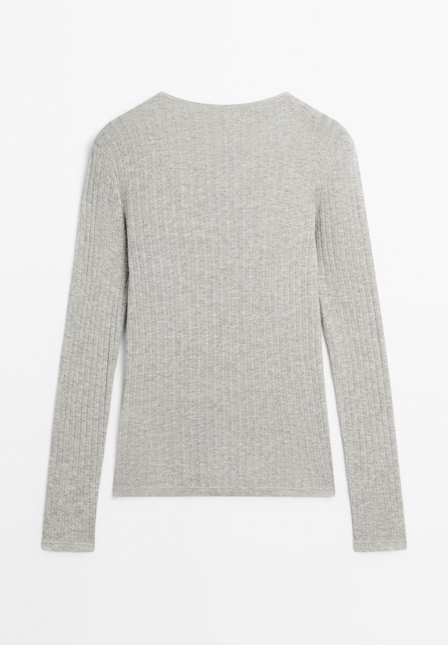 Футболка из тонкой, струящейся ткани. Ажурная отделка ткани. Длинные рукава. Круглый вырез горловины. Вырез: Круглый вырезМатериал и уход