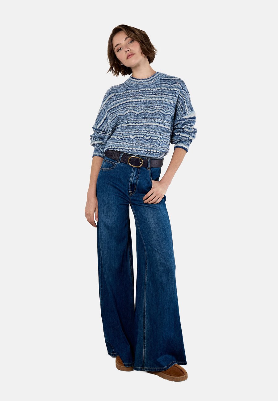 Добавьте ярких красок в свою коллекцию трикотажных изделий с помощью этого полосатого джемпера. Эта блузка, выполненная из мягкого, легкого ажурного трикотажа, имеет стандартный крой, круглый вырез и ребристую отделку. Вырез: КруглыйМатериал и уход