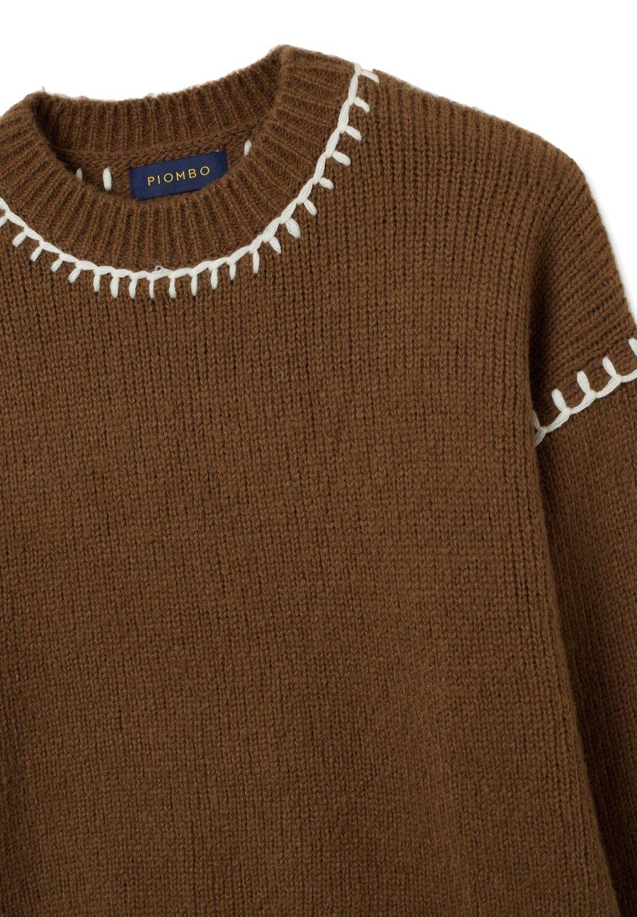 Коричневый свитер с белой вышивкой из линии PIOMBO - идеальная вещь для осенне-зимнего сезона. Изготовленный из смеси хлопка и шерсти, он обеспечивает тепло и мягкость, идеально подходящие для защиты от холода. Круглый вырез горловины и длинные рукава комфортно облегают тело, а трикотажные детали придают дизайну неповторимый вид. Вырез горловины: КруглыйМатериал и уход