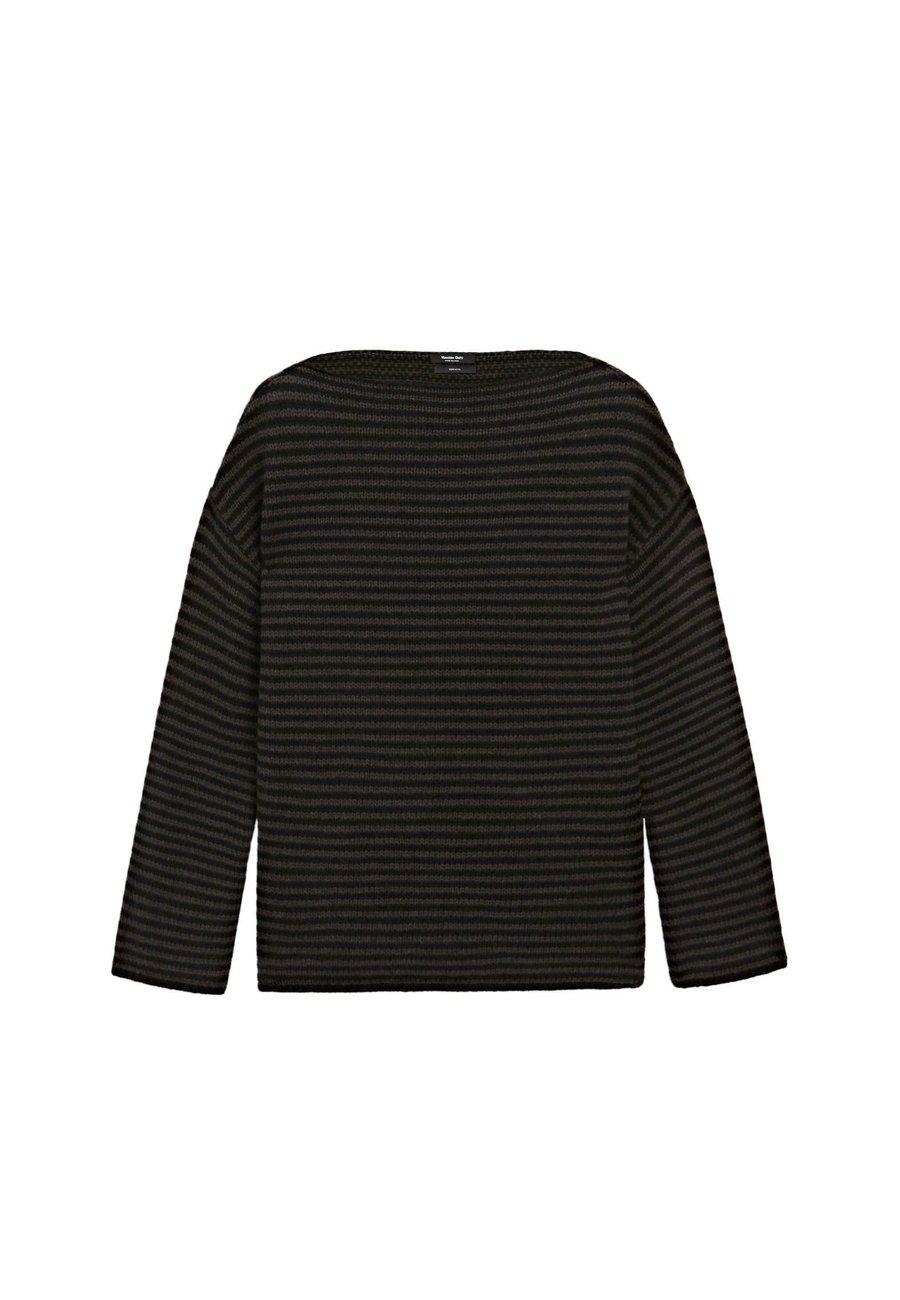 Свитер из 100% шерсти. Полосатый узор. Длинные рукава. Спущенные плечи. Вырез-лодочка. Вырез: ЛодочкаМатериал и уход