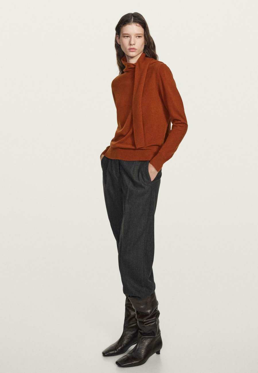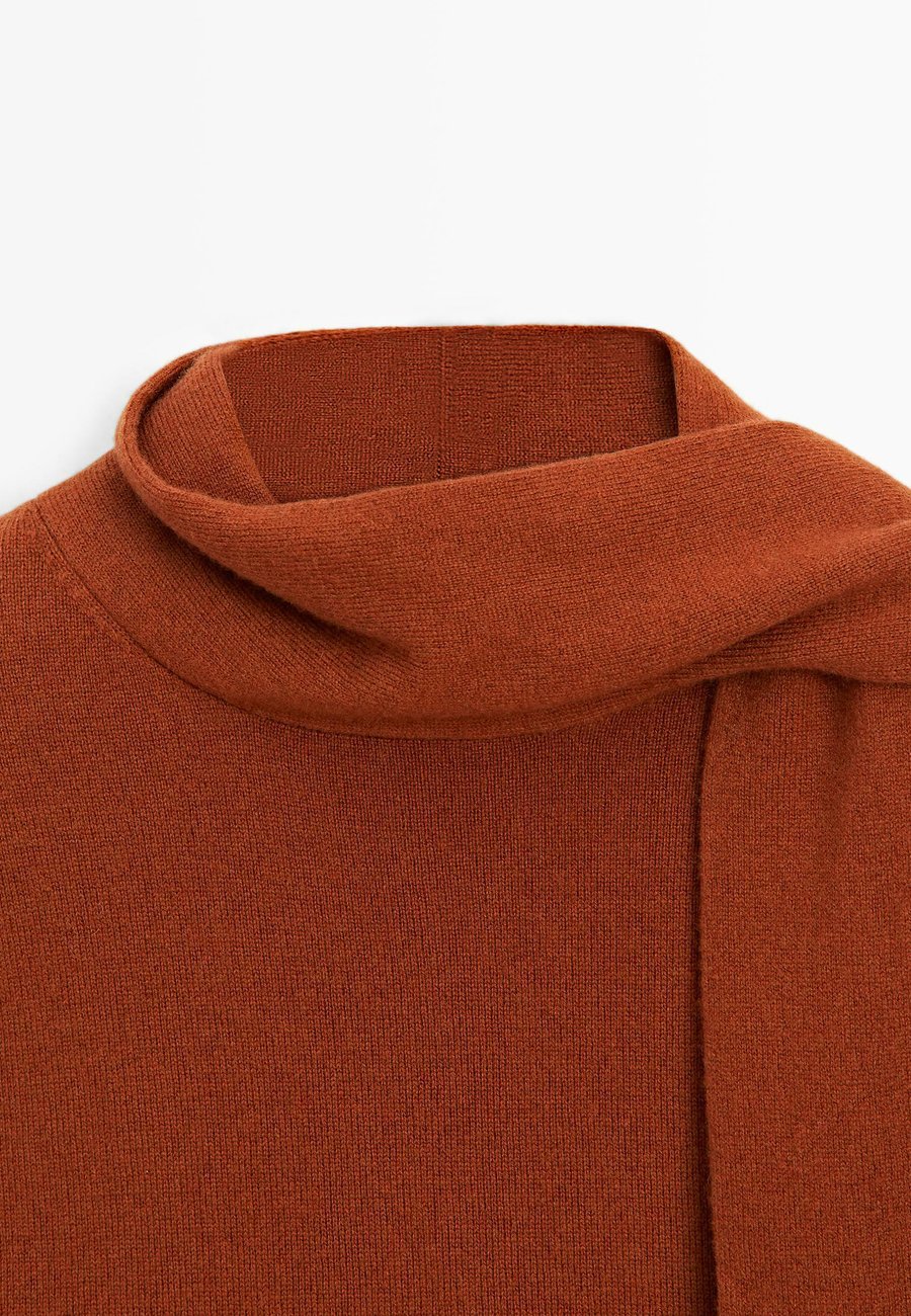 Деталь в виде шарфа на воротнике. Ребристая отделка. Длинные рукава. Вязаный свитер из смесовой шерстяной ткани. Воротник: Шаль.Материал и уход