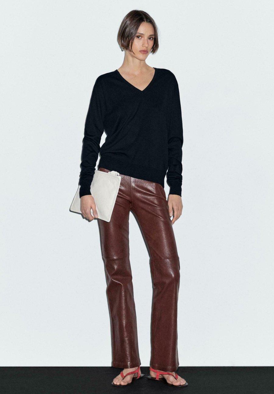 Свитер из шерстяной смеси. V-образный вырез. Ребристая отделка. Длинные рукава. Вырез горловины: глубокий V-образный. Манжеты рукавов: ребристые. Узор: меланж. Материал и уход: 42% шерсть, 30% вискоза, 28% полиамид. Ткань: трикотаж. Содержит нетекстильные части животного происхождения: нет. Инструкции по уходу: не сушить в сушильной машине. Размер и посадка: рост модели 179 см, размер S. Посадка: стандартная. Форма: прямая. Длина: стандартная. Длина рукава: длинная. Длина рукава: 59 см (размер XS). Общая длина: 58 см. (Размер XS)Доставка товаров осуществляется курьером или на пункт выдачи заказов.