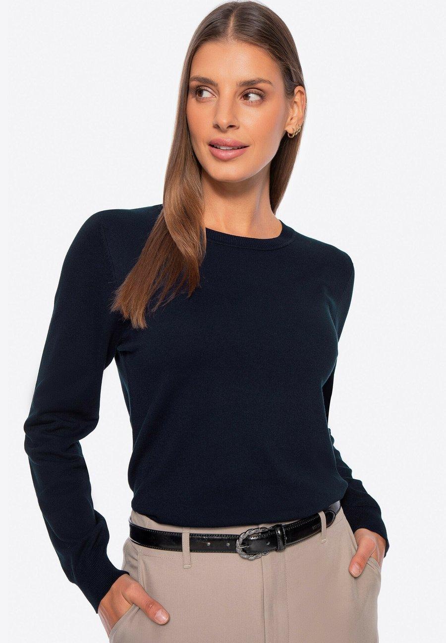 Изящный женский джемпер - повседневная простота с утонченными деталями. Этот джемпер - идеальный выбор, если вы ищете что-то удобное и одновременно элегантное. Изготовленный из тонкой, мягкой смеси вискозы и нейлона, он приятен на ощупь и обеспечивает комфорт в течение всего дня, независимо от случая. Длинные рукава с ребристыми манжетами обеспечивают аккуратную посадку и помогают поддерживать форму, а ребристый круглый вырез горловины подчеркивает простой, но изысканный характер дизайна. Сдержанный вышитый логотип на подоле завершает образ, добавляя тонкий штрих брендинга. Для кого он предназначен? Если вы цените простоту, комфорт и универсальность в повседневных нарядах, этот джемпер станет отличным дополнением к вашему гардеробу. Идеально подходит для работы или встреч с друзьями - это дизайн, который легко адаптируется ко многим случаям. Наш совет: носите его с джинсами или брюками с высокой талией. В холодные осенние и зимние дни сочетайте его с юбкой и ботильонами или наденьте под пиджак и добавьте элегантную сумку через плечо - создав классический и функциональный образ для многих случаев. Вырез горловины: КруглыйМатериал и уход