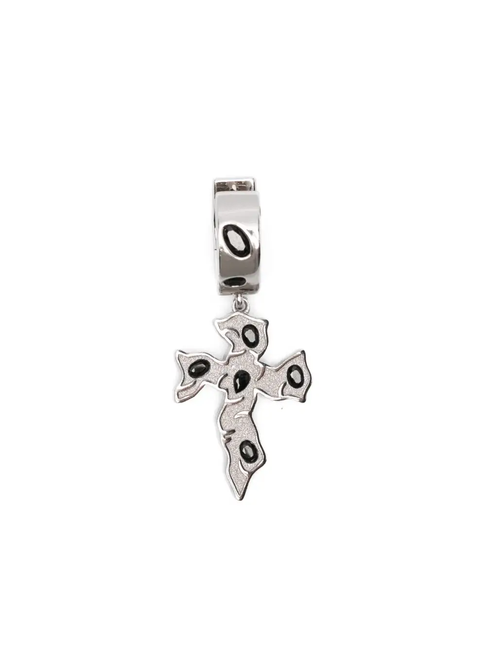 Серьги с крестовидным кулоном серебристого оттенка, застёжка в виде Т-образной планки, дизайн в виде кольца. Эти серьги продаются парой. При повседневном использовании и воздействии внешних факторов блеск драгоценных камней и золотых поверхностей может уменьшаться. Для ухода используйте специальные неабразивные средства, предназначенные для чистки ювелирных изделий.