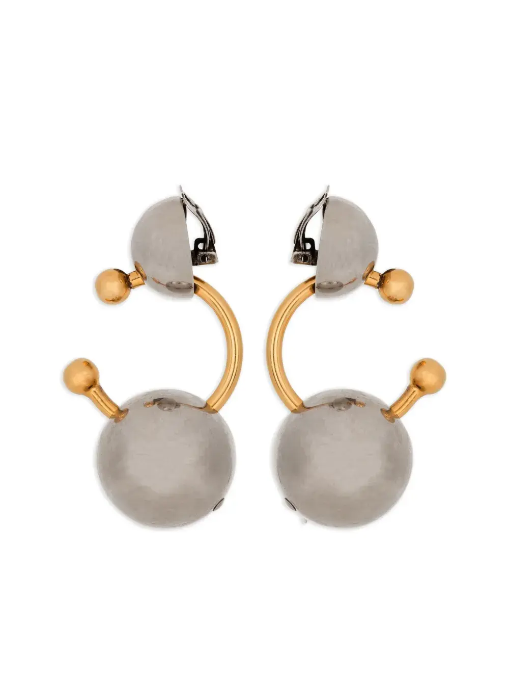 Подробнее о товаре: - серебристый - золотистая фурнитура - круглая форма - декор в виде сферы - В комплект входят две серьги. - Повседневное использование и воздействие внешних факторов могут уменьшить блеск драгоценных камней и поверхностей, покрытых золотом. Для ухода используйте специальные неабразивные средства, предназначенные для чистки ювелирных изделий.