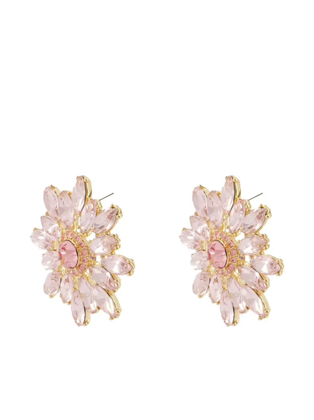 Золотистого и розового цвета, с цветочным дизайном, застежка-гвоздик. Эти серьги идут в паре. Обычное ежедневное ношение и внешние факторы могут снизить блеск драгоценных камней и золотых поверхностей. Для ухода используйте специальные неабразивные средства, предназначенные для чистки ювелирных изделий.