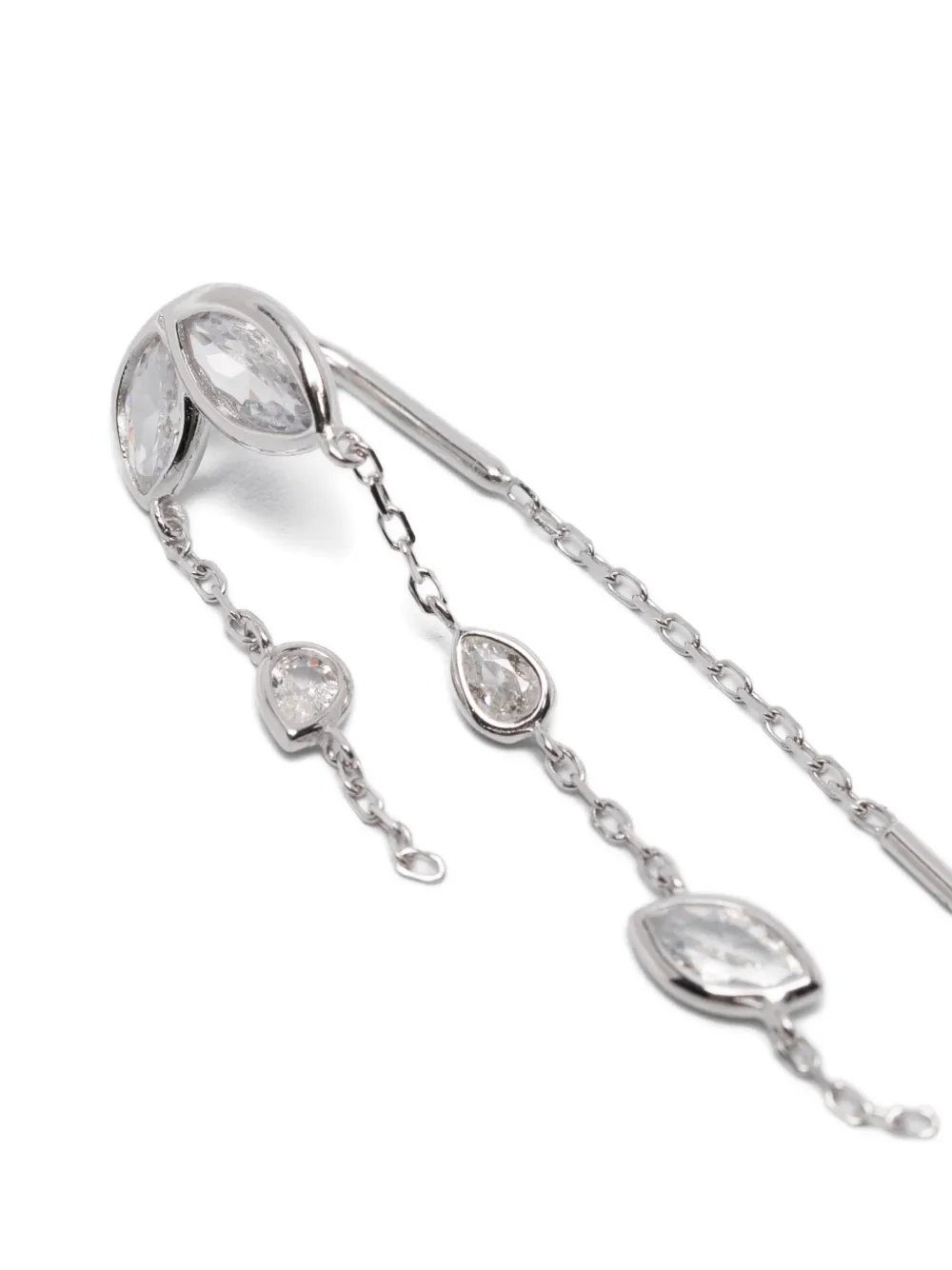 Серебристый оттенок, украшения из циркония, декоративная цепочка, подвесной стиль, цирконий маркиз и грушевидной огранки. Эти серьги идут в паре.