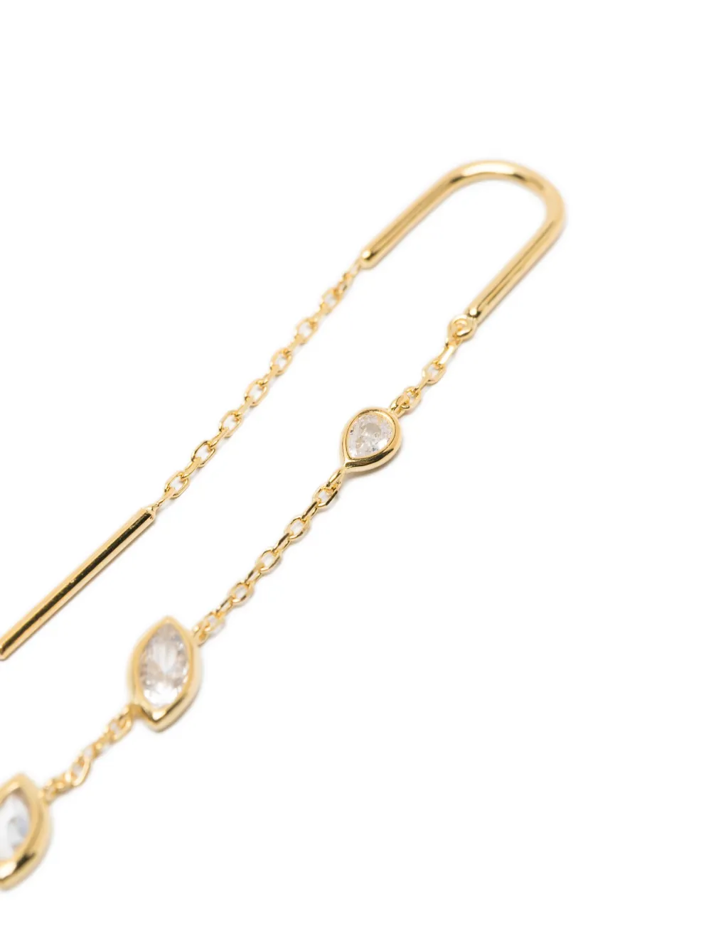 Золотистая цепочка, украшенная отделка, застёжка-протяжка, свисающий стиль. Эти серьги поставляются парой. Обычное ежедневное использование и воздействие внешних факторов могут уменьшить блеск драгоценных камней и золотых поверхностей. Для ухода используйте специальные неабразивные средства, предназначенные для чистки украшений.