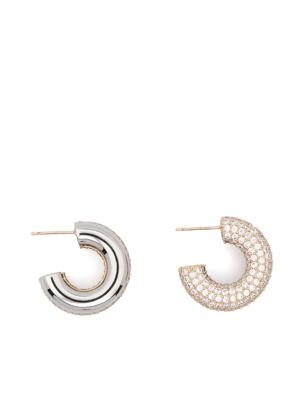 Золото и серебро, латунь, циркониевые оксидные камни, застёжка-гвоздик. Эти серьги поставляются в паре.