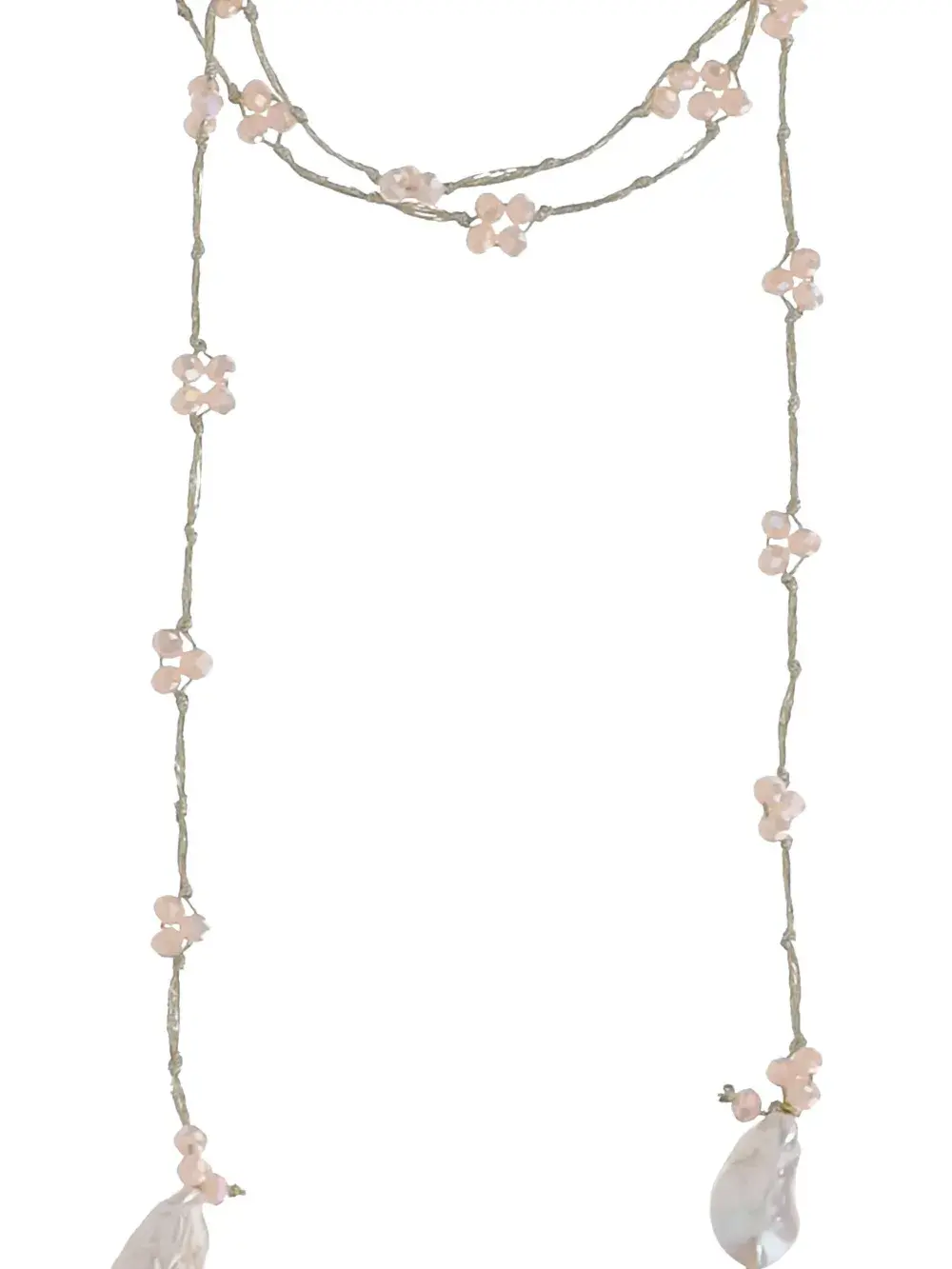 Серебристый оттенок, натуральные волокна, жемчуг на концах Жемчуг должен быть последним аксессуаром, который вы надеваете утром, и первым, который снимаете вечером. Избегайте контакта с духами или кремами, и просто протирайте мягкой тканью для очистки.