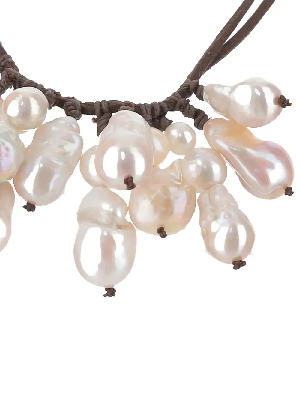 Коричневый замшевый шнур с жемчужным декором и завязывающийся на узел