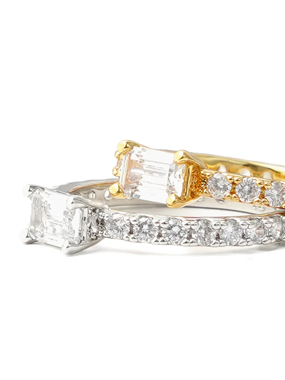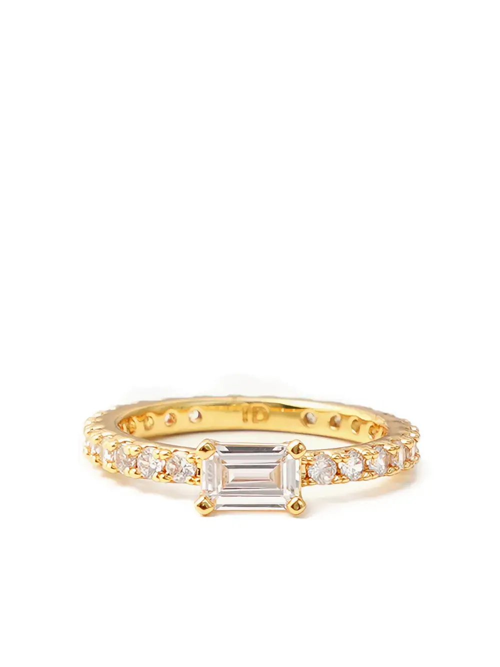 Полоска золотистого цвета с прямоугольным огранённым камнем, полированная отделка. Обычное повседневное использование и воздействие внешних факторов могут уменьшить блеск драгоценных камней и золотых поверхностей. Для ухода используйте специальные неабразивные средства, предназначенные для чистки украшений.