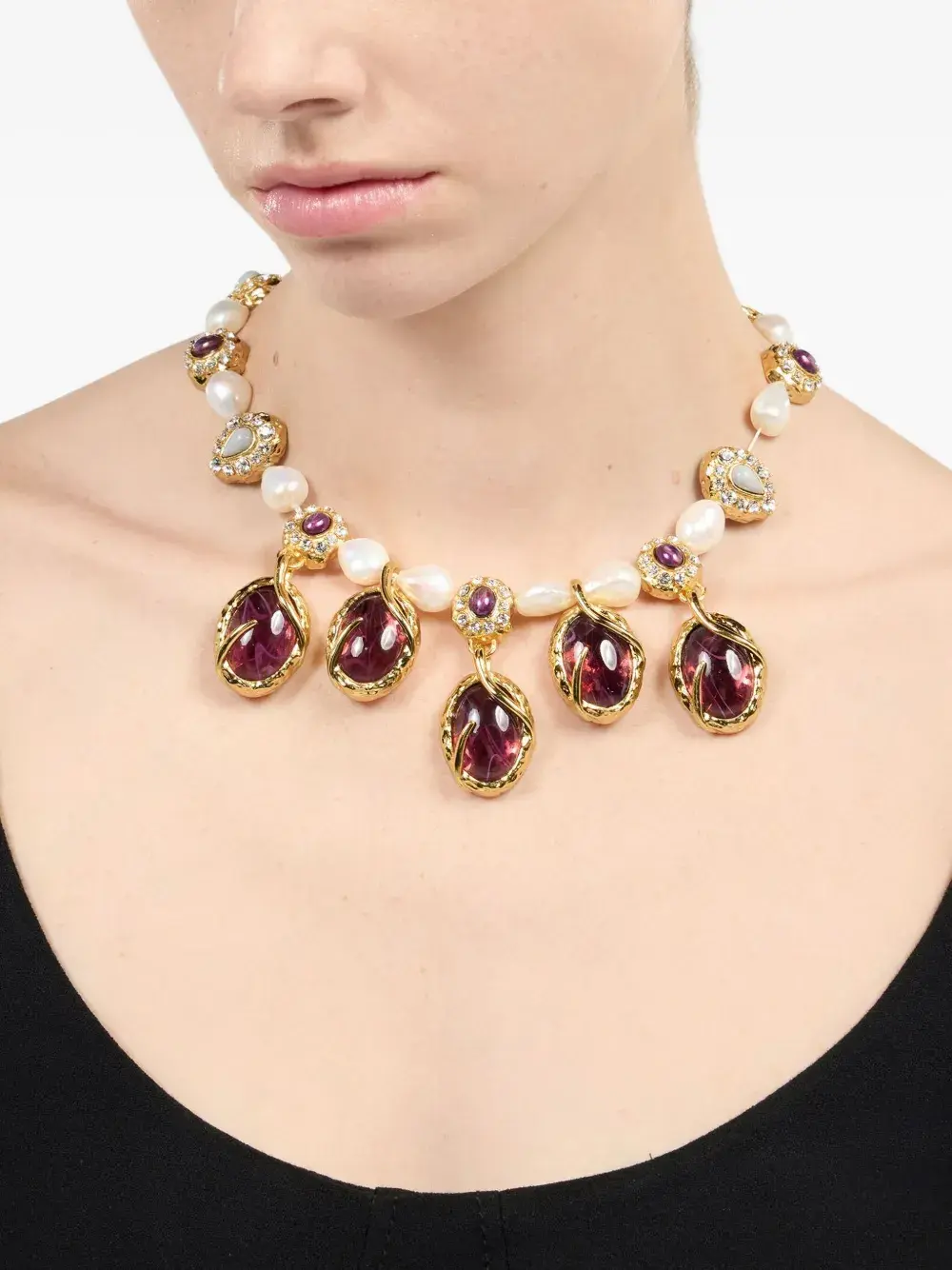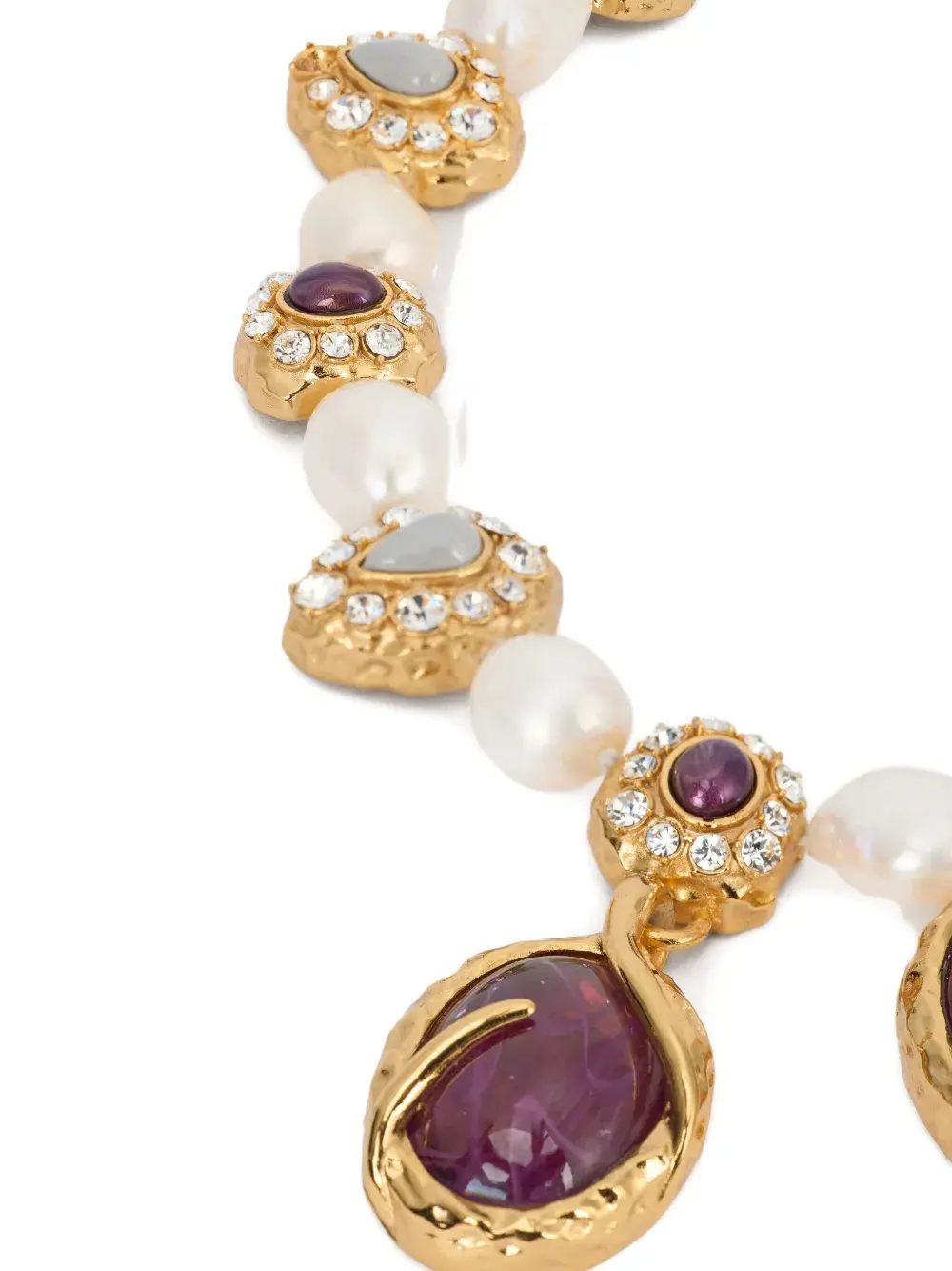Подробнее о товаре: - бежевый - декор из жемчуга - аметист - застежка-лобстер - глянцевая фактура - Повседневное использование и воздействие внешних факторов могут уменьшить блеск драгоценных камней и поверхностей, покрытых золотом. Для ухода используйте специальные неабразивные средства, предназначенные для чистки ювелирных изделий. - Жемчуг должен быть последним, что вы надеваете утром, и первым, что вы снимаете вечером. Избегайте контакта с духами и кремами, а для очистки просто протрите мягкой тканью.