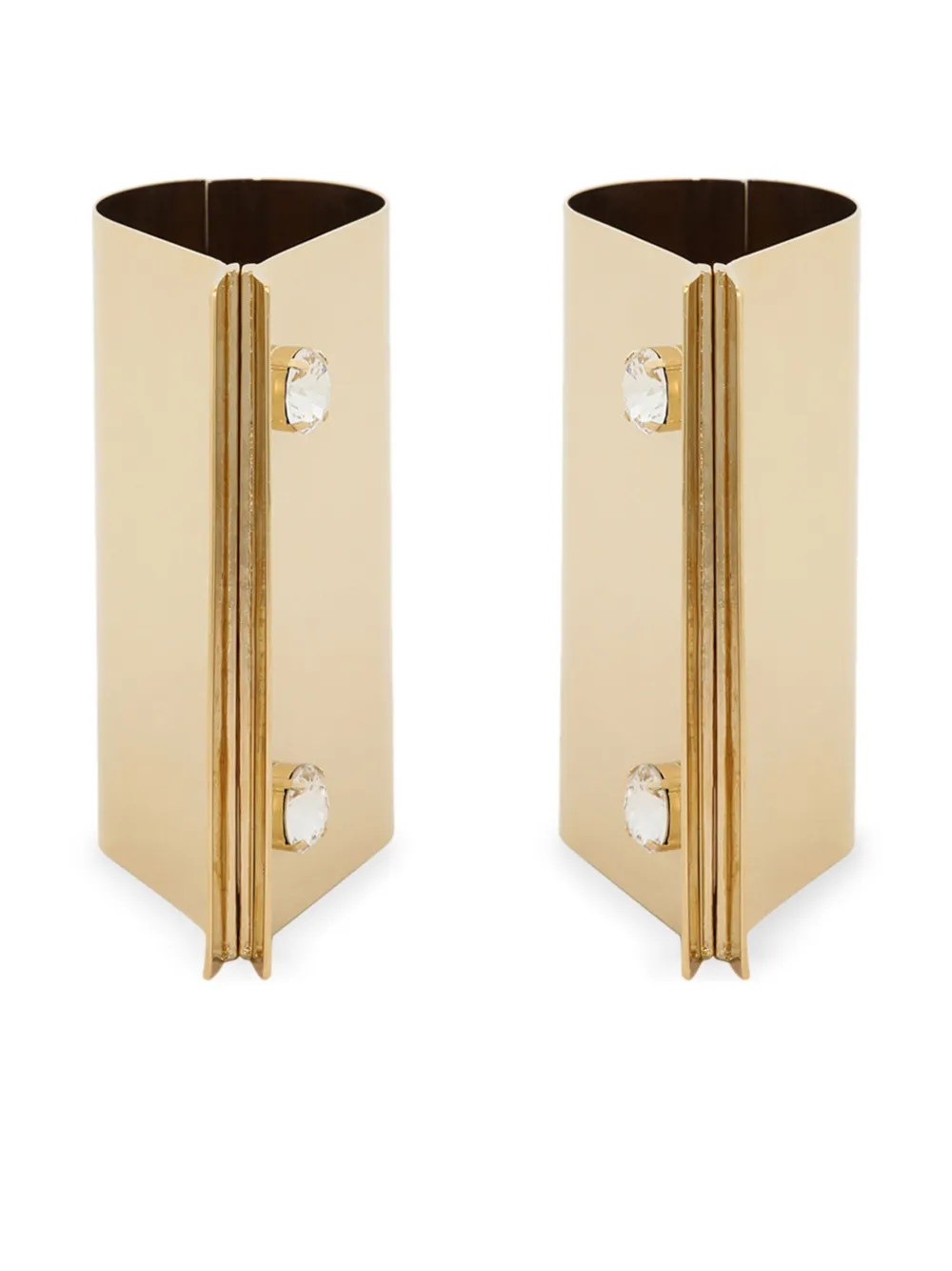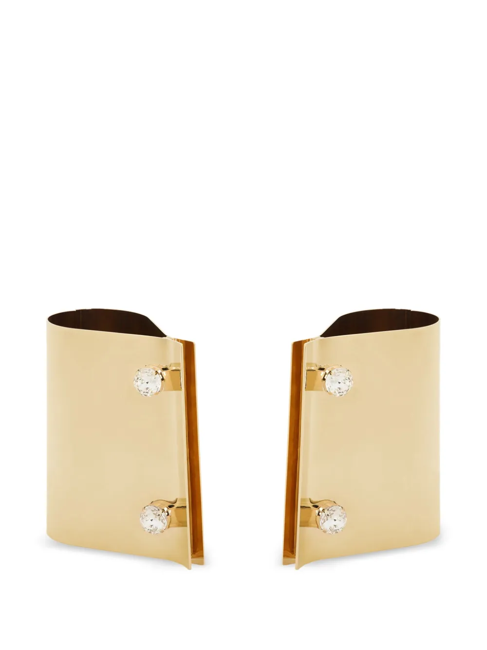 Золотистый, латунь, манжеты на пуговицах, дизайн без застежки и декор из кристаллов.