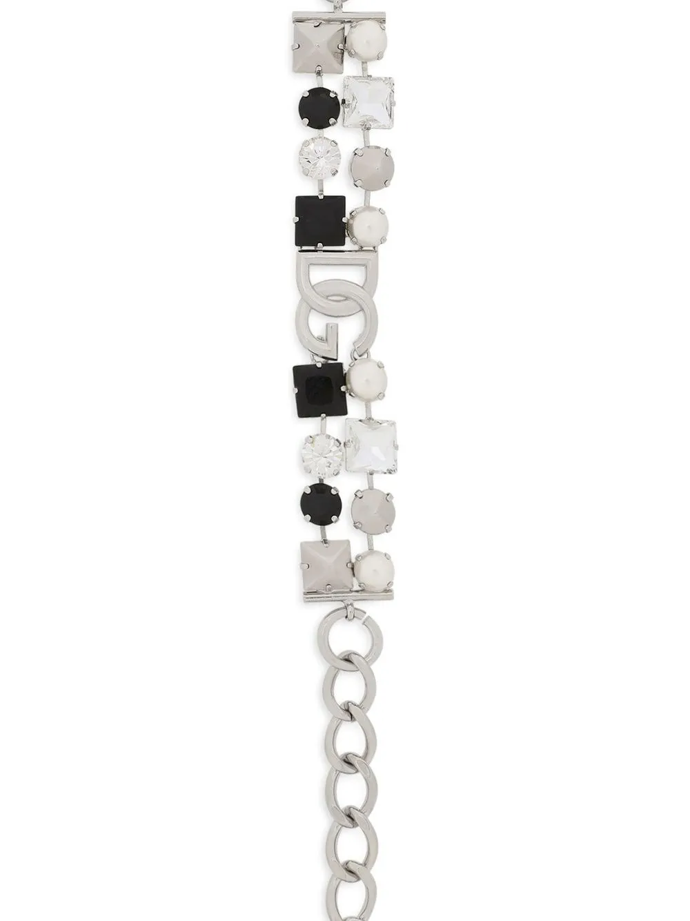 Браслет с логотипом DG и стразами Dolce & Gabbana, серебристый