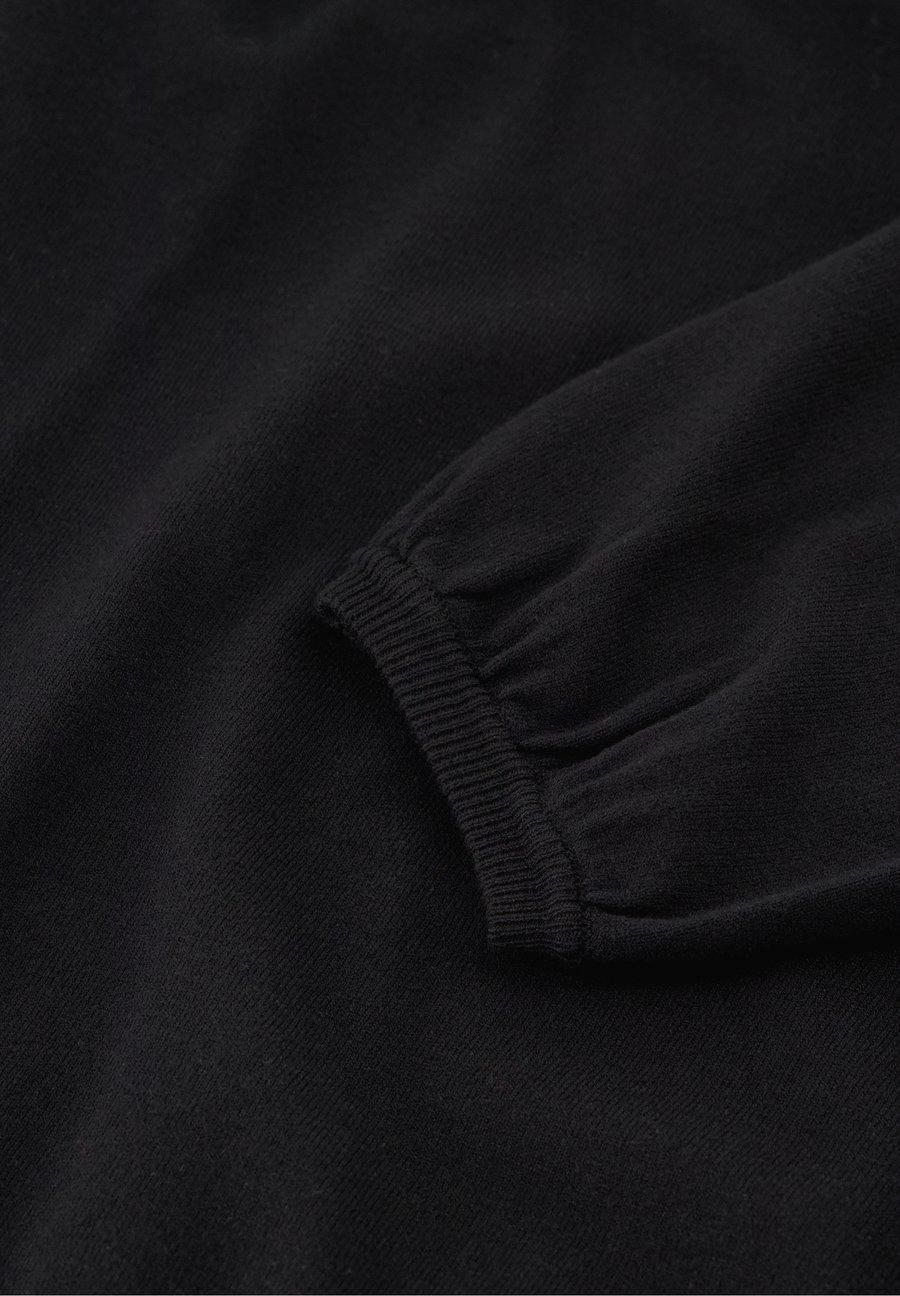Этот черный пуловер - легкий трикотаж, идеально подходящий для многослойной одежды в прохладные осенние дни. Он мягко драпируется, сохраняя при этом изысканную форму. Свободный крой легко сочетается с юбками или джинсами, создавая повседневный, но элегантный образ. Воротник: Высокий воротникМатериал и уход