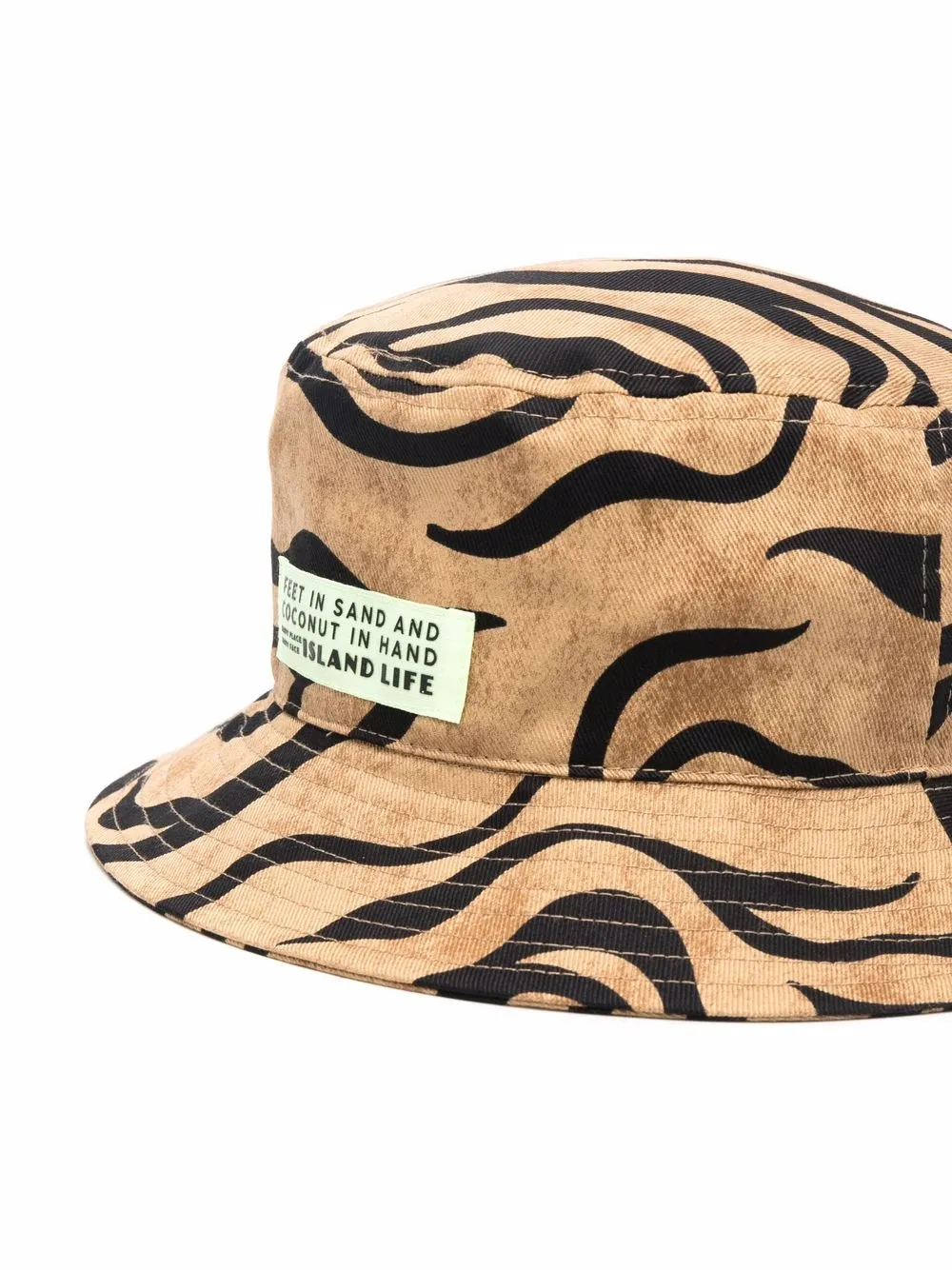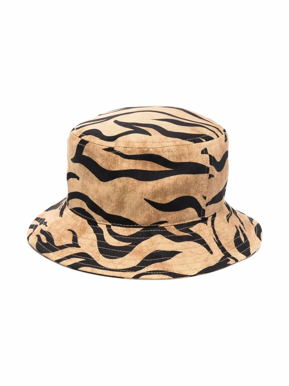 Узкие поля, зебровый принт, нашивка с логотипом спереди, овальная тулья и модель без застежки.