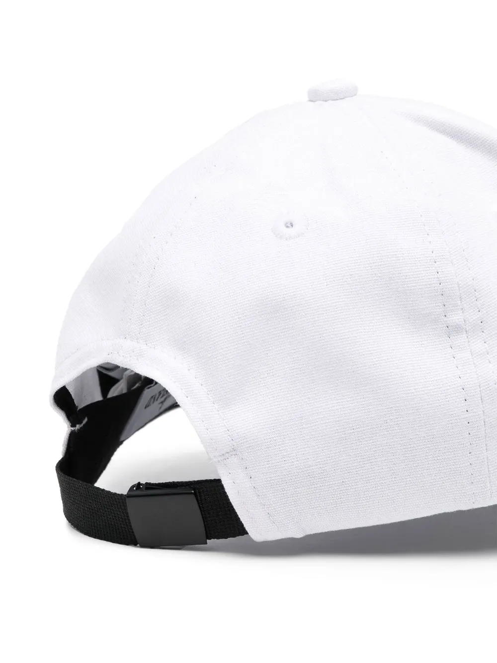 Белый, хлопок, нашивка с логотипом спереди, застежка на липучке сзади, закругленный козырек и регулируемый дизайн.