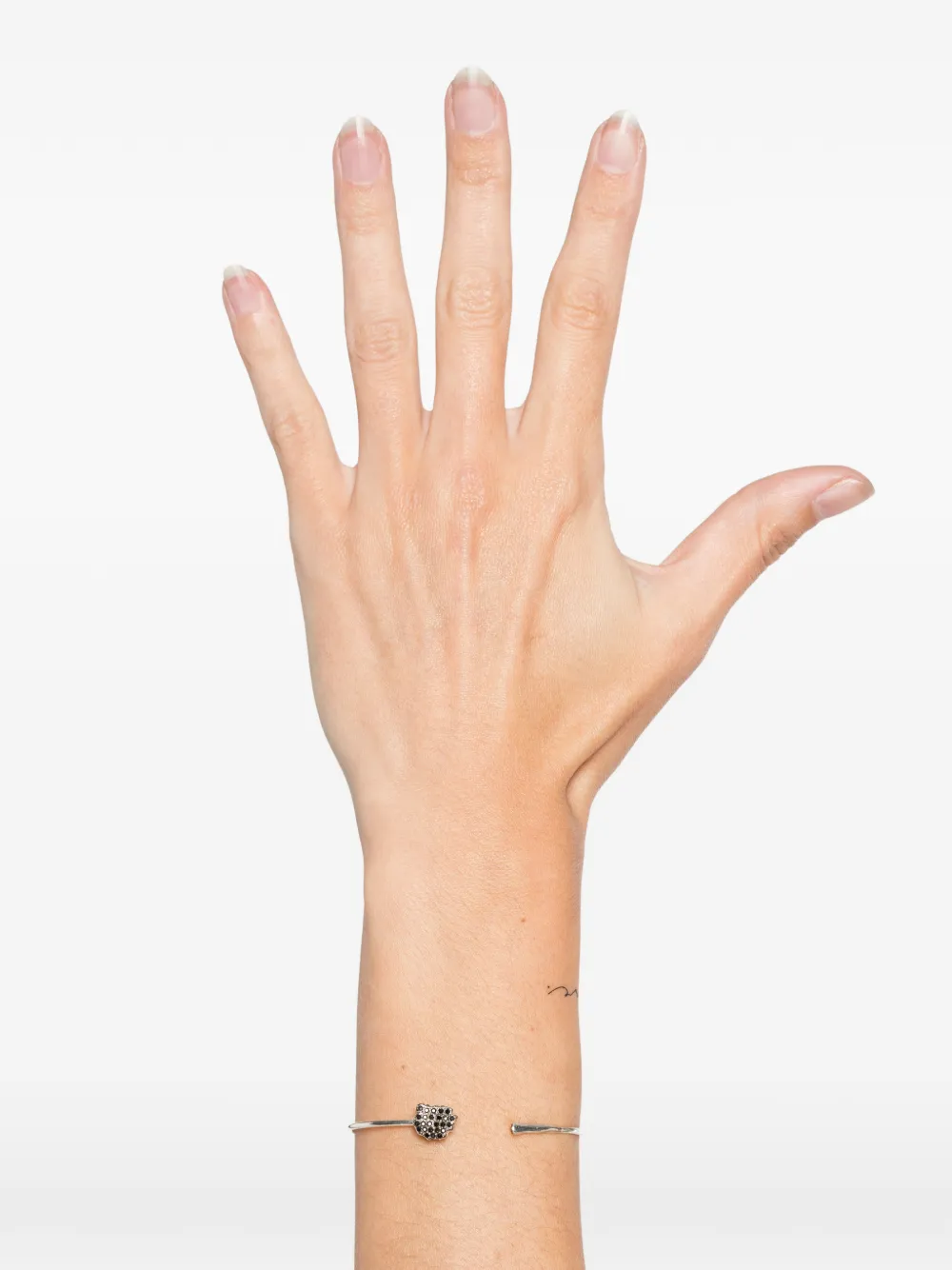 Подробнее о товаре: - серебристый - серебро 925 пробы - паве из черных бриллиантов круглой огранки - открытый браслет-кафф - Повседневное использование и воздействие внешних факторов могут уменьшить блеск драгоценных камней и поверхностей, покрытых золотом. Для ухода используйте специальные неабразивные средства, предназначенные для чистки ювелирных изделий.