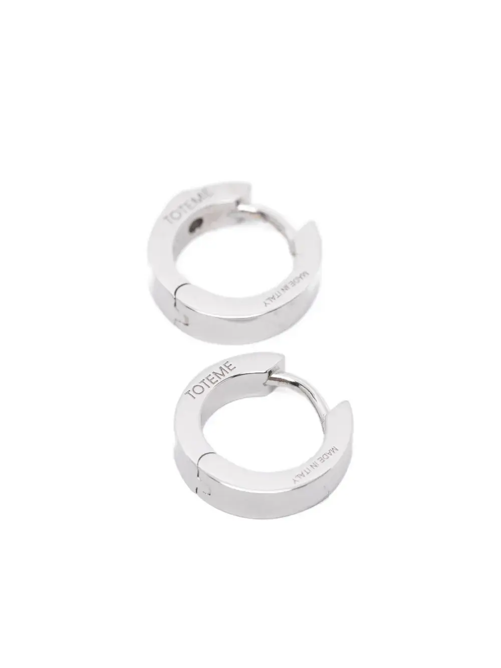 Серебристый оттенок, 18-каратное белое золото, гравированный логотип, дизайн в виде кольца, застежка на шарнире. Эти серьги продаются в паре. Повседневное использование и воздействие внешних факторов могут снизить блеск драгоценных камней и поверхности золота. Для ухода используйте специальные неабразивные средства, предназначенные для чистки ювелирных изделий.