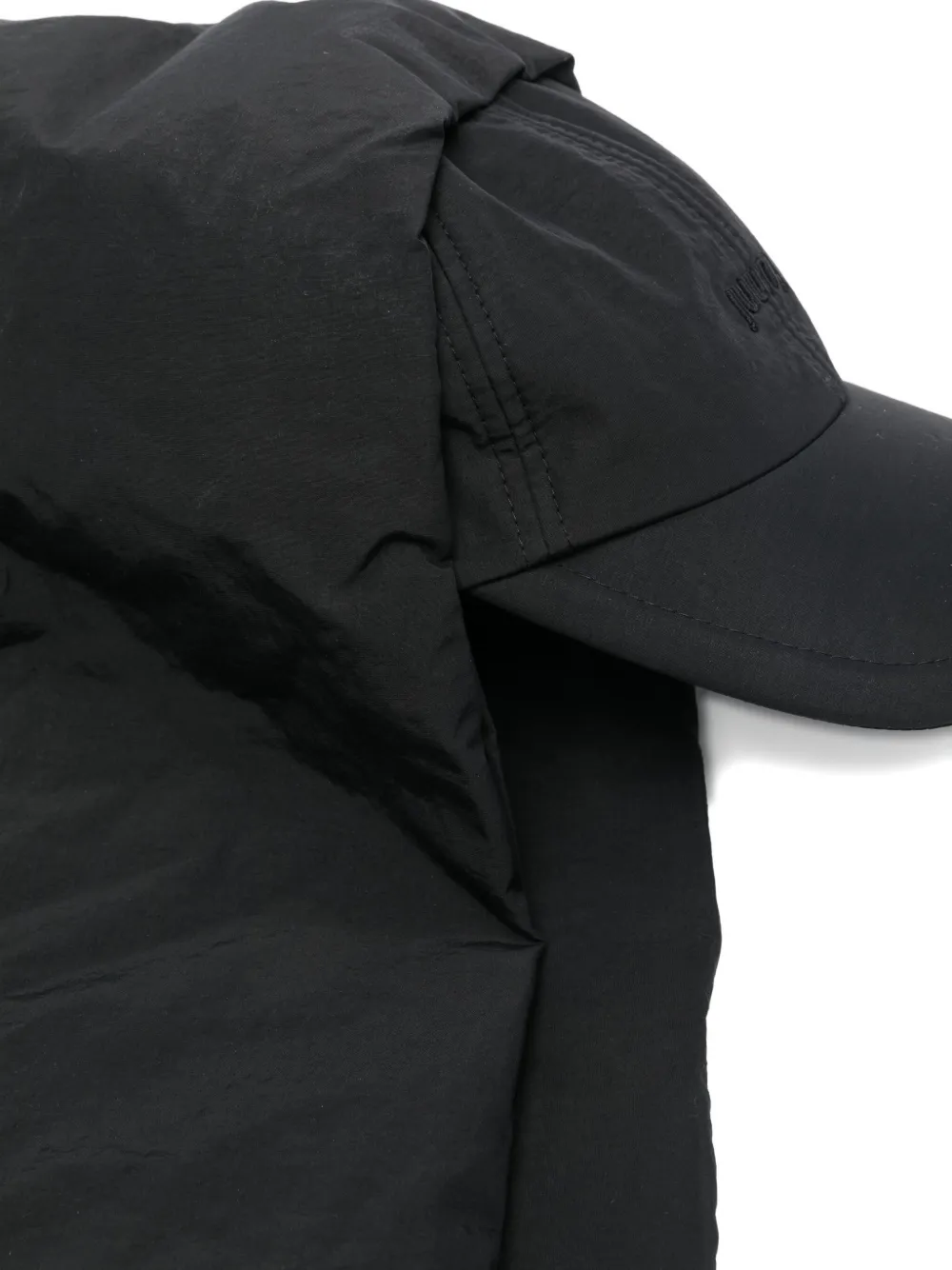 Черная панельная конструкция, вышитый логотип, драпированная задняя панель, изогнутый козырек, простроченный край