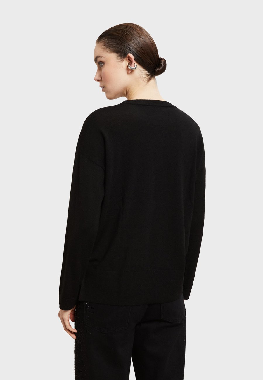 Свитер с длинными рукавами, круглым вырезом и свободным кроем, обеспечивающим струящуюся и комфортную посадку. Незаменимый элемент гардероба, одновременно элегантный и повседневный, идеально сочетающийся с любым нарядом. Вырез: КруглыйМатериал и уход