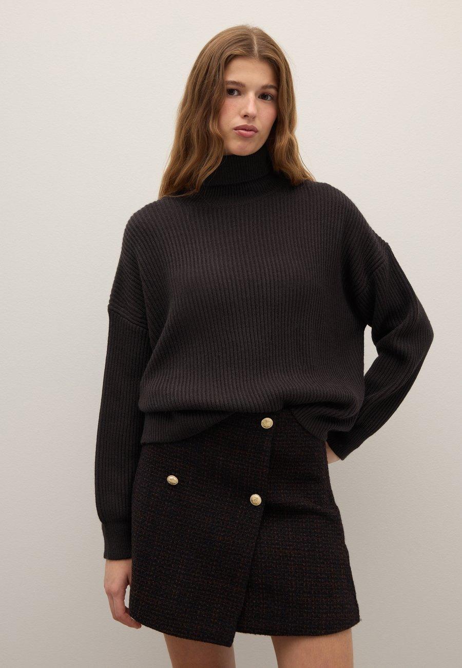 Черный свитер с высоким воротником от Piombo идеально подходит для того, чтобы стильно и комфортно пережить самые холодные дни. Изготовленный из комбинированных материалов, он обеспечивает отличную посадку благодаря трикотажной вязке. Стандартная длина и длинные рукава делают его идеальным для создания изысканного, вневременного образа. Сочетайте его с любимыми вещами для безупречного осенне-зимнего образа. Вырез: ХенлиМатериал и уход