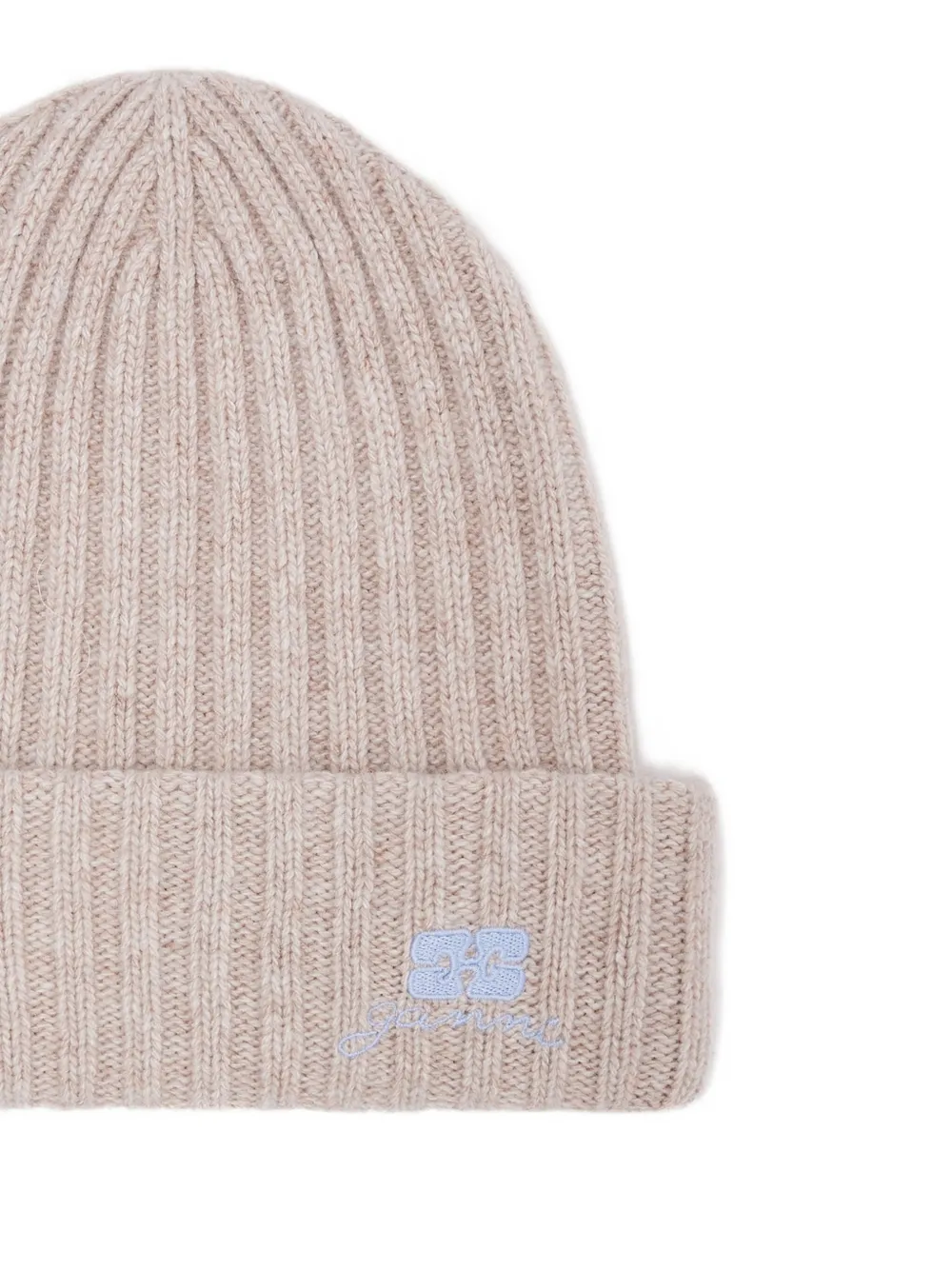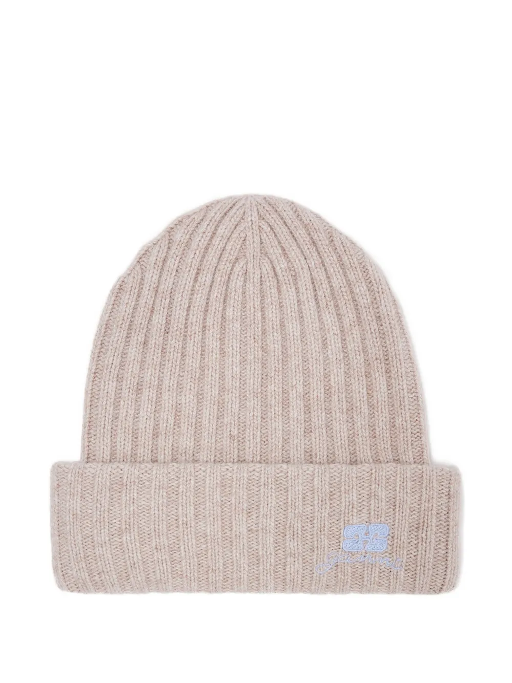 Шапка бини в рубчик с логотипом Ganni, бежевый