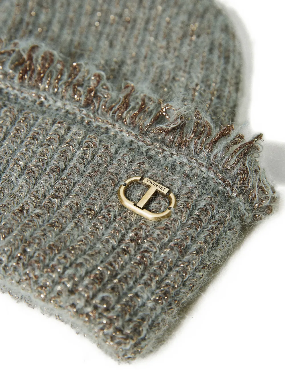 Шапка бини с бахромой и эффектом металлик Twinset, зеленый