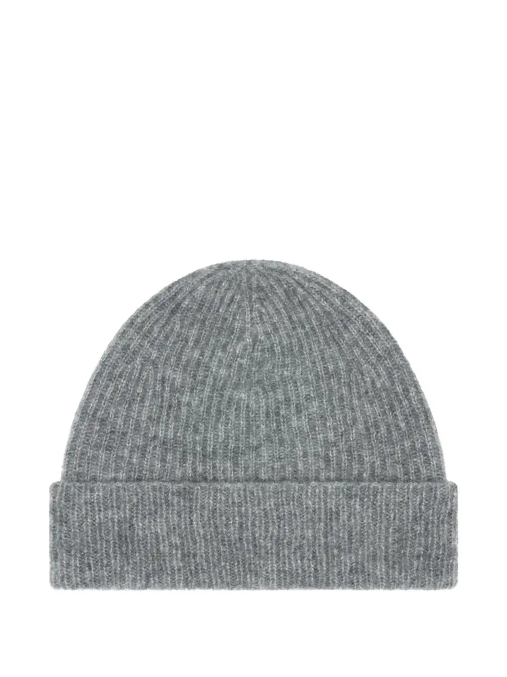 Серый вязаный шапка с отворотом и нашивкой-логотипом