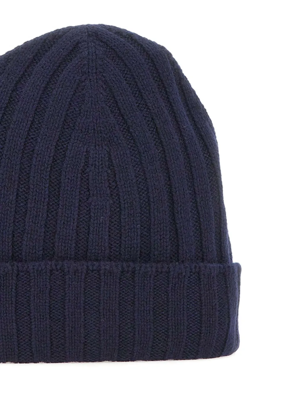 Тёмно-синяя вязаная шапка с отворотом в рубчик