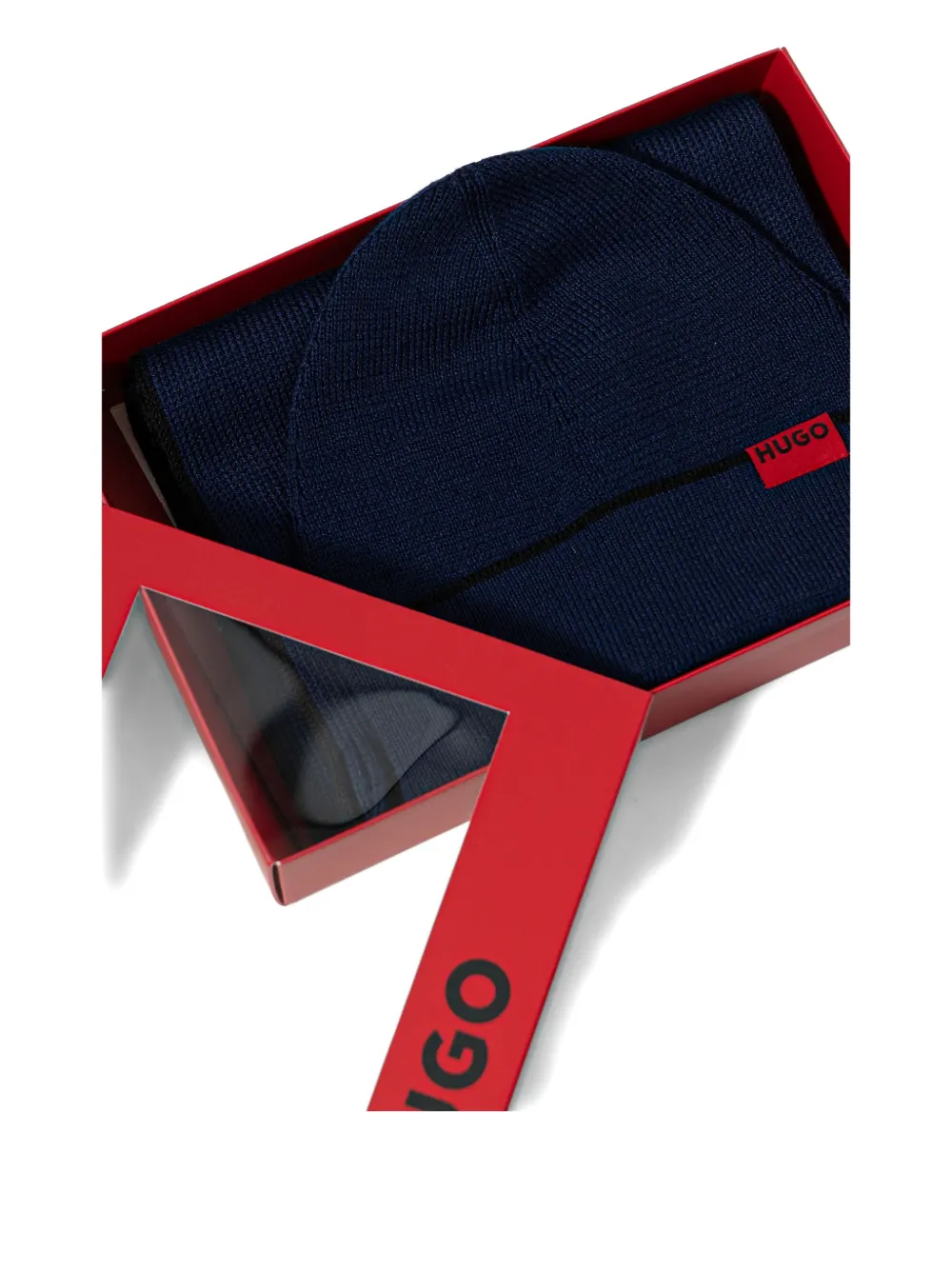 Комплект из шапки с логотипом и бахромой Hugo, синий