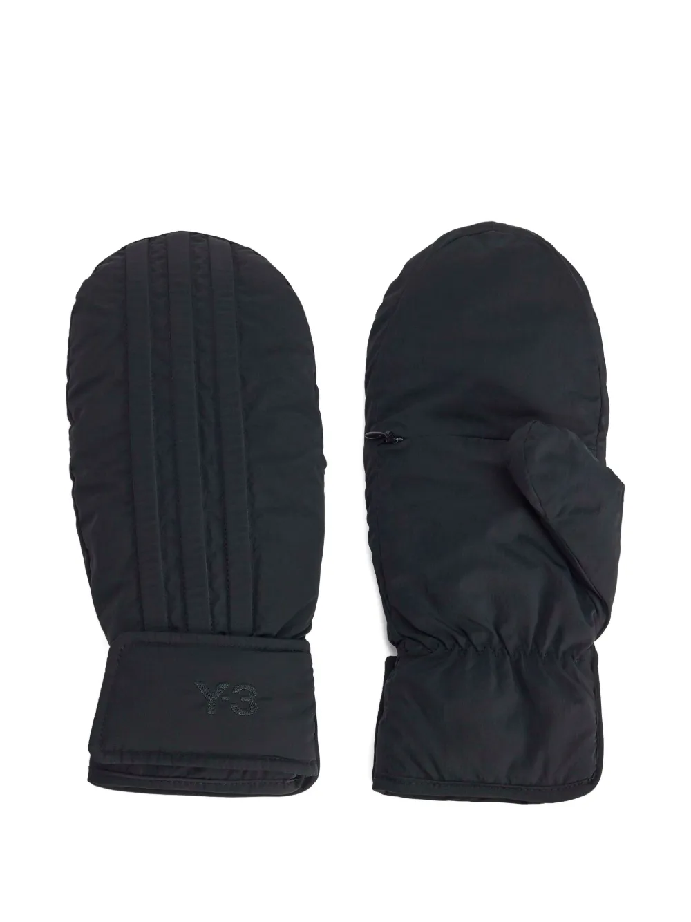 Черные варежки стеганого дизайна с вышивкой логотипа, карманом на молнии и эластичной манжетой