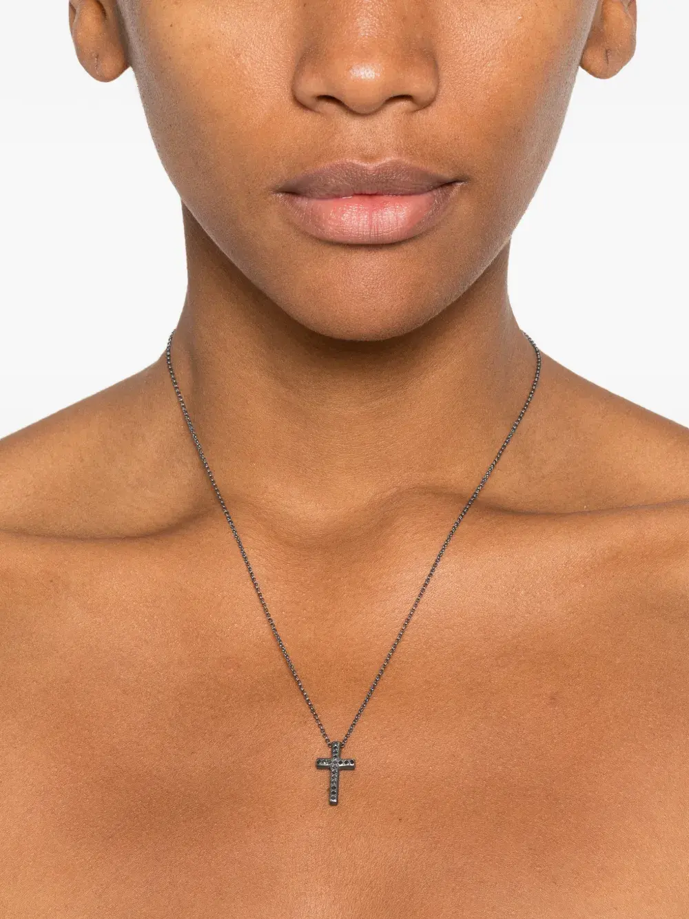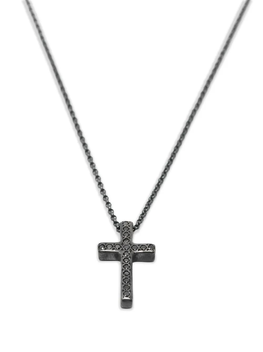 Подробнее о товаре: - серебристый - серебро 925 пробы - паве из черных бриллиантов круглой огранки - подвеска-крест - цепь шарикового плетения - застежка-карабин - Повседневное использование и воздействие внешних факторов могут уменьшить блеск драгоценных камней и поверхностей, покрытых золотом. Для ухода используйте специальные неабразивные средства, предназначенные для чистки ювелирных изделий.