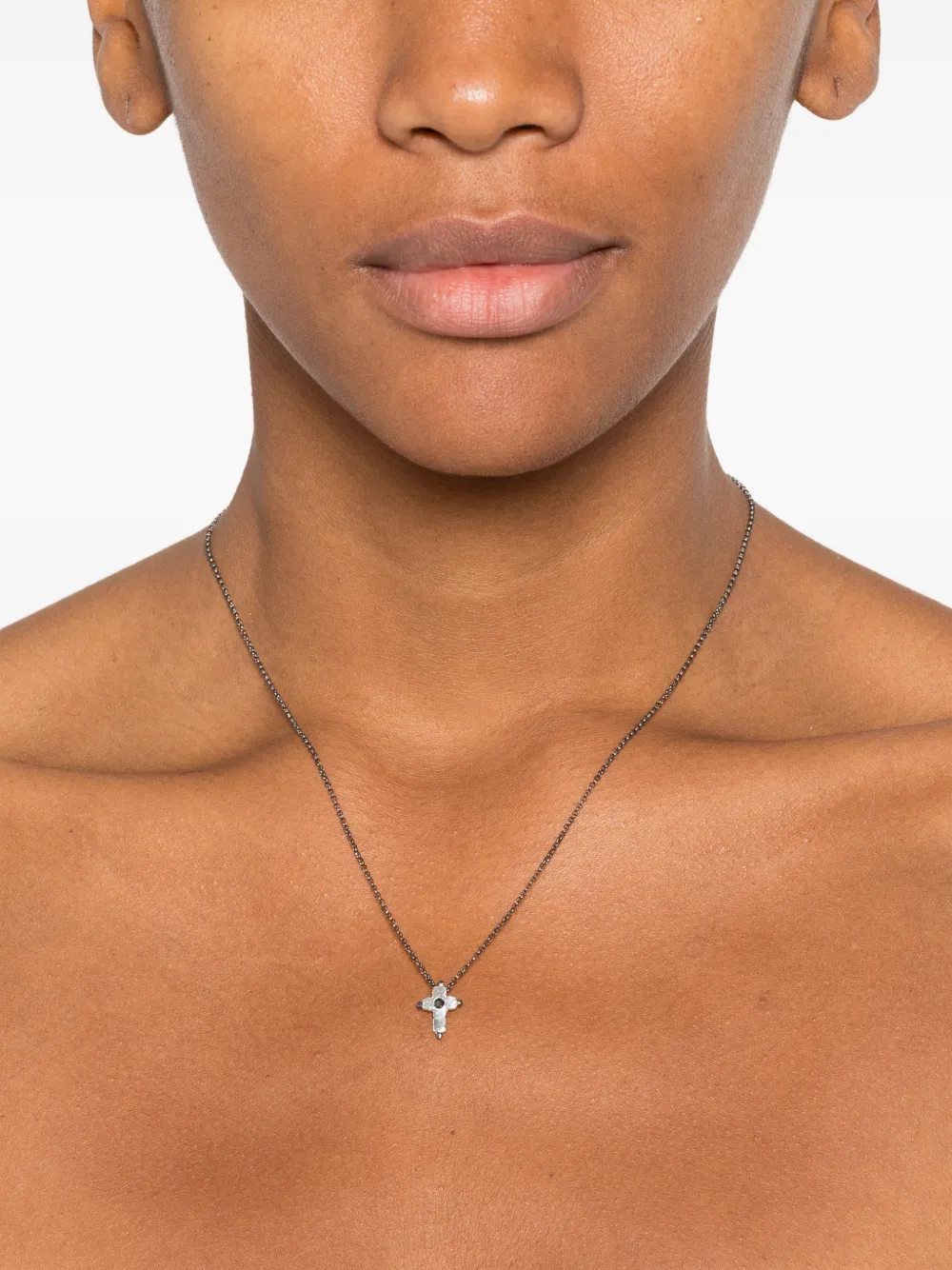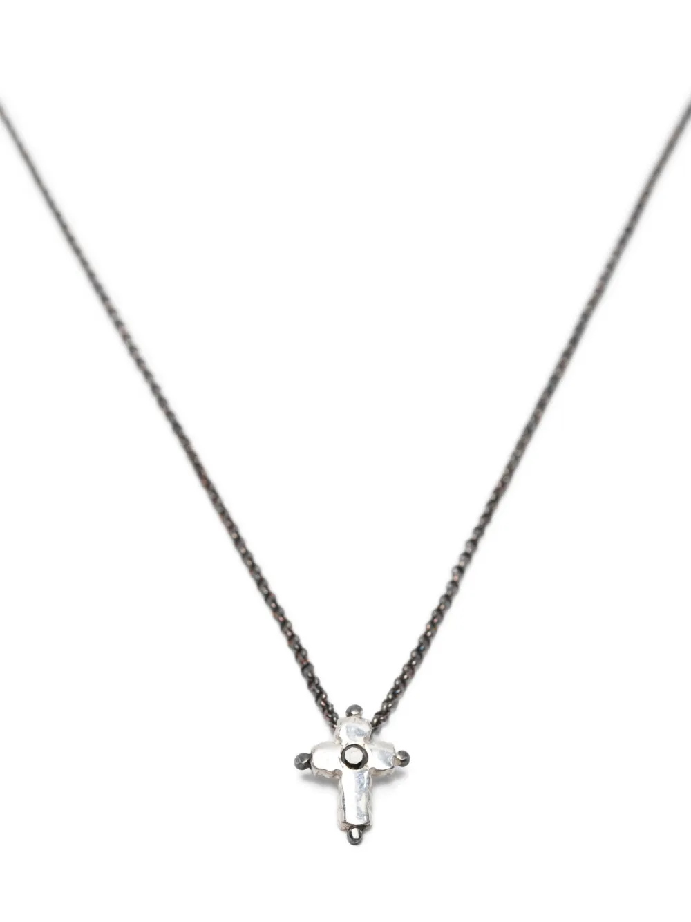Подробнее о товаре: - серебристый - серебро 925 пробы - паве из черных бриллиантов круглой огранки - подвеска-крест - якорная цепочка - застежка-карабин - Повседневное использование и воздействие внешних факторов могут уменьшить блеск драгоценных камней и поверхностей, покрытых золотом. Для ухода используйте специальные неабразивные средства, предназначенные для чистки ювелирных изделий.