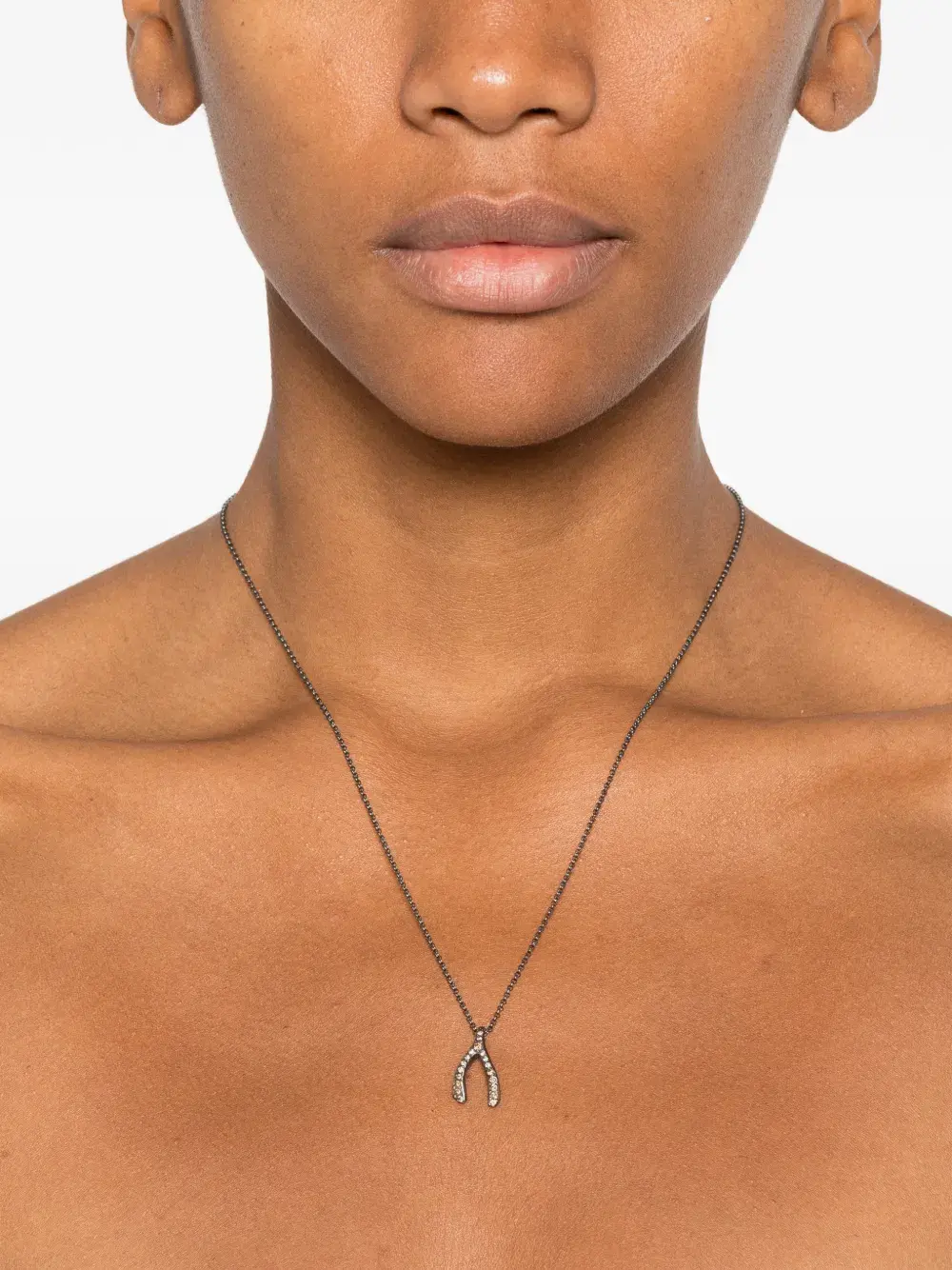 Подробнее о товаре: - серебристый - серебро 925 пробы - паве из бриллиантов круглой огранки - подвеска Wishbone - глянцевая фактура - Повседневное использование и воздействие внешних факторов могут уменьшить блеск драгоценных камней и поверхностей, покрытых золотом. Для ухода используйте специальные неабразивные средства, предназначенные для чистки ювелирных изделий.