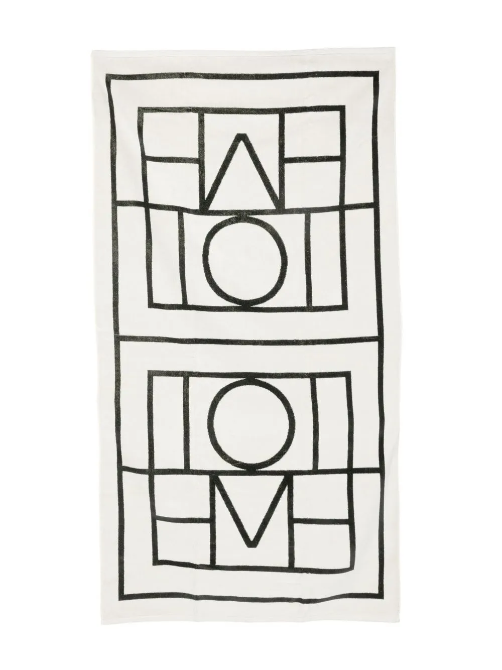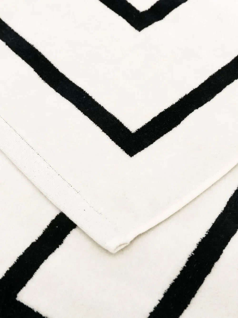 Кремово-белый, черный, хлопок, прямоугольная форма, жаккардовый логотип и обработанные края.