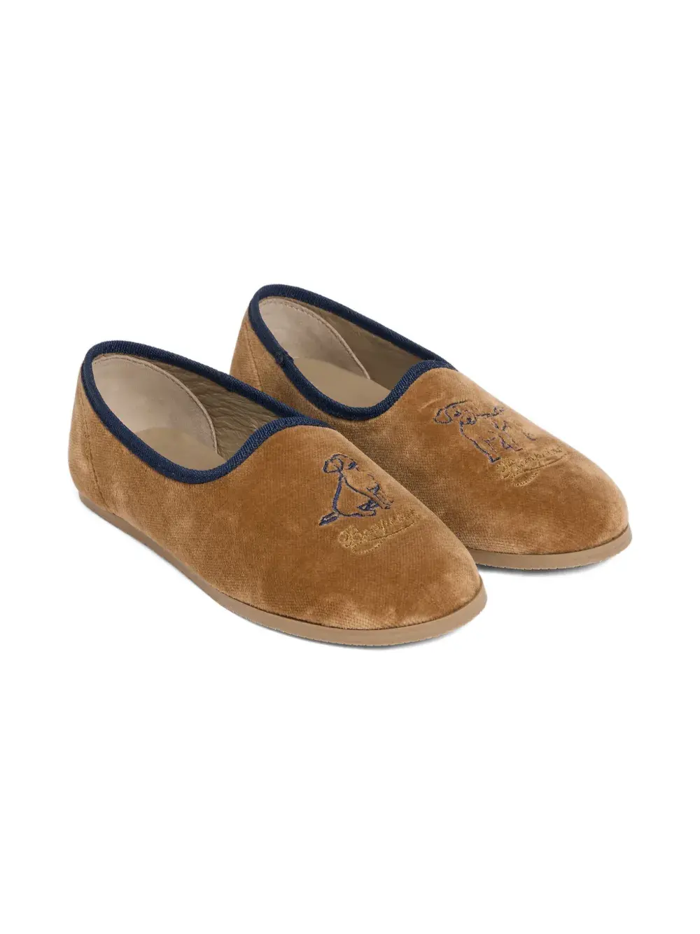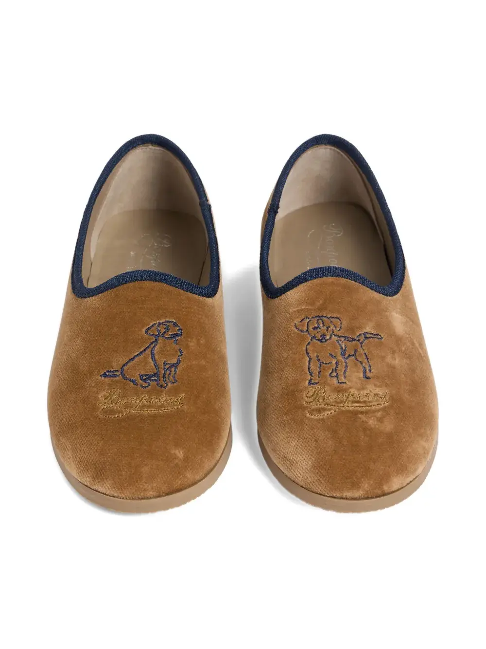 Бархатные слиперы с вышивкой Bonpoint, синий