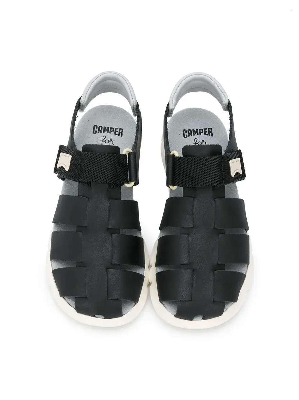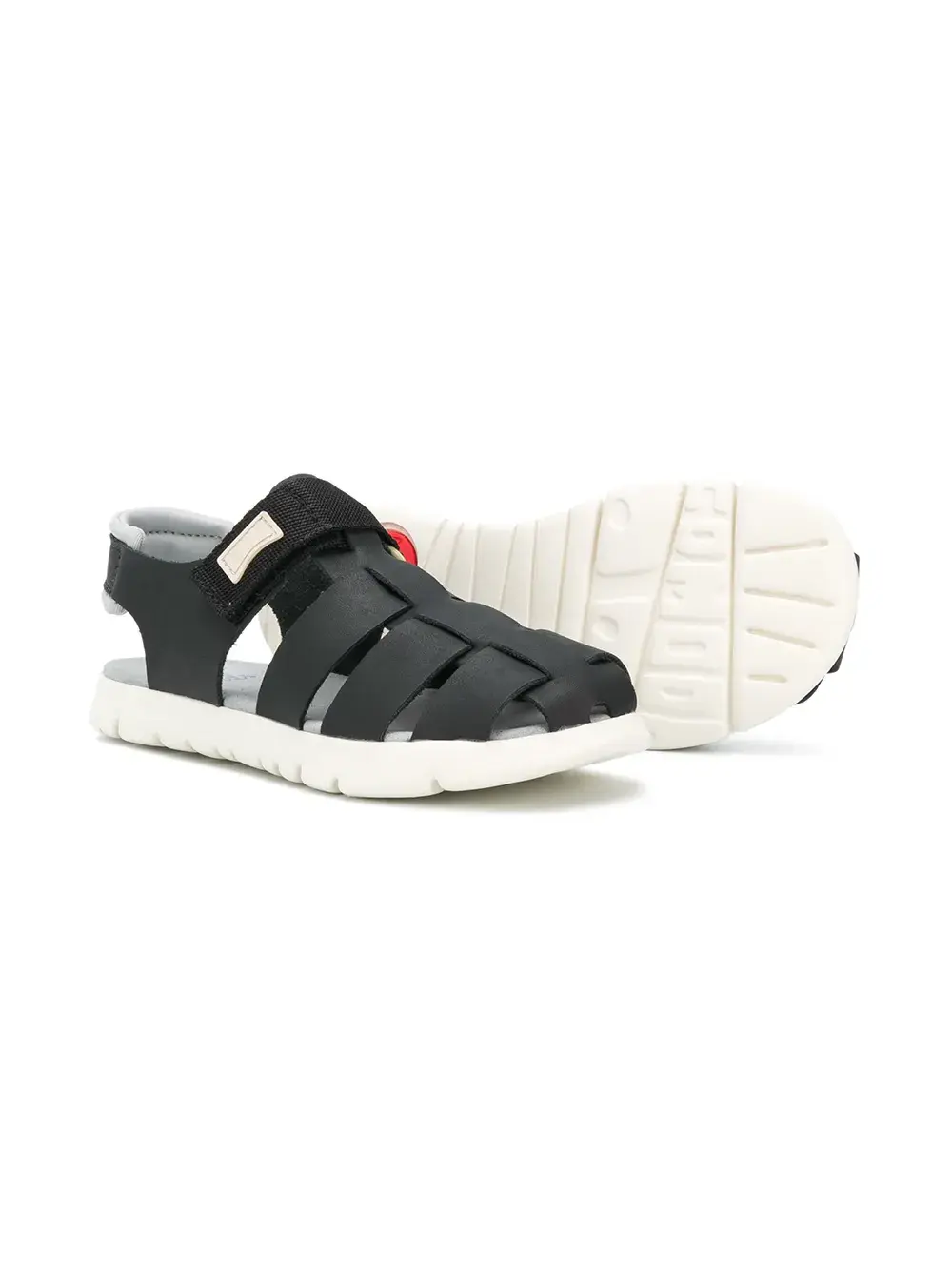 Сандалии Oruga от Camper. Фирменная стелька, закругленный носок, застежка на липучке и плоская резиновая подошва.