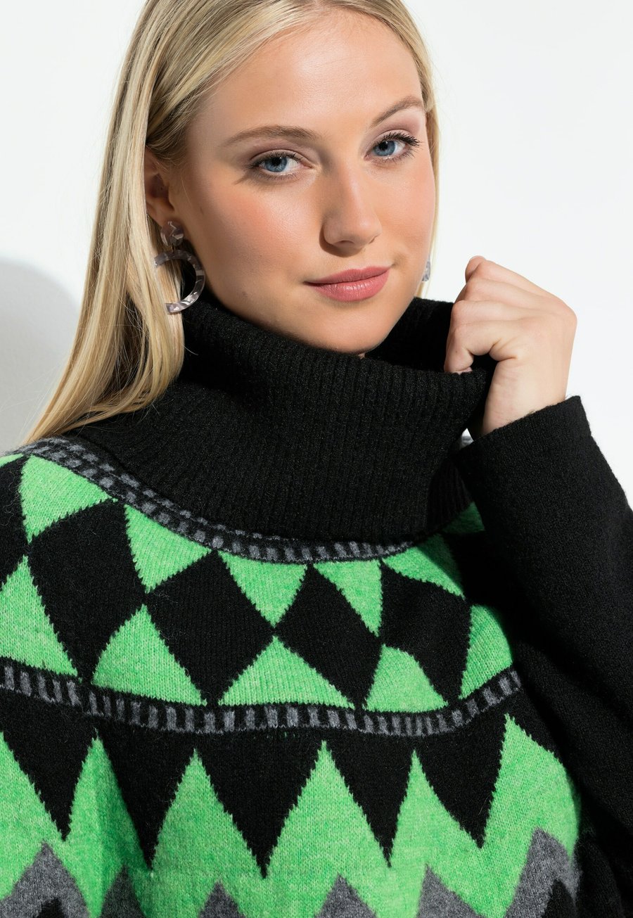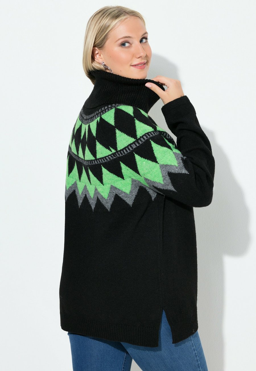 Свитер с высоким воротником, классический крой, из мягкого трикотажа с красочным норвежским узором. Мягкий высокий воротник, длинные рукава реглан. Свитер с высоким воротником, классический крой, из мягкого трикотажа с красочным норвежским узором. Мягкий высокий воротник, длинные рукава реглан. Инструкции по уходу: Машинная стирка, не сушить в сушилке, не гладить. Воротник: Воротник-полоМатериал и уход