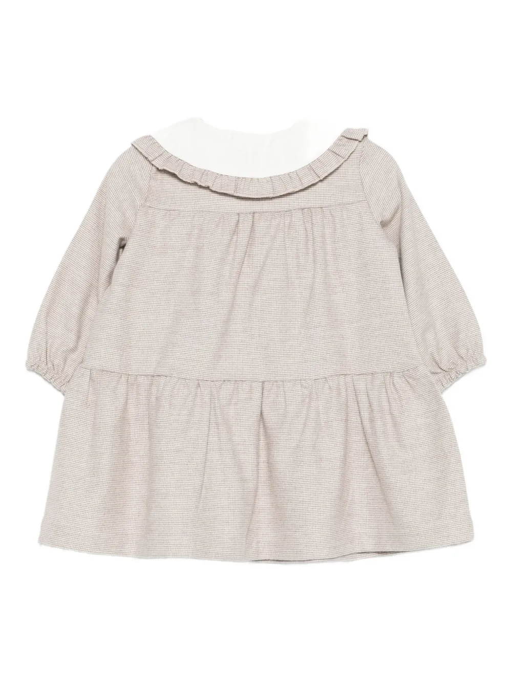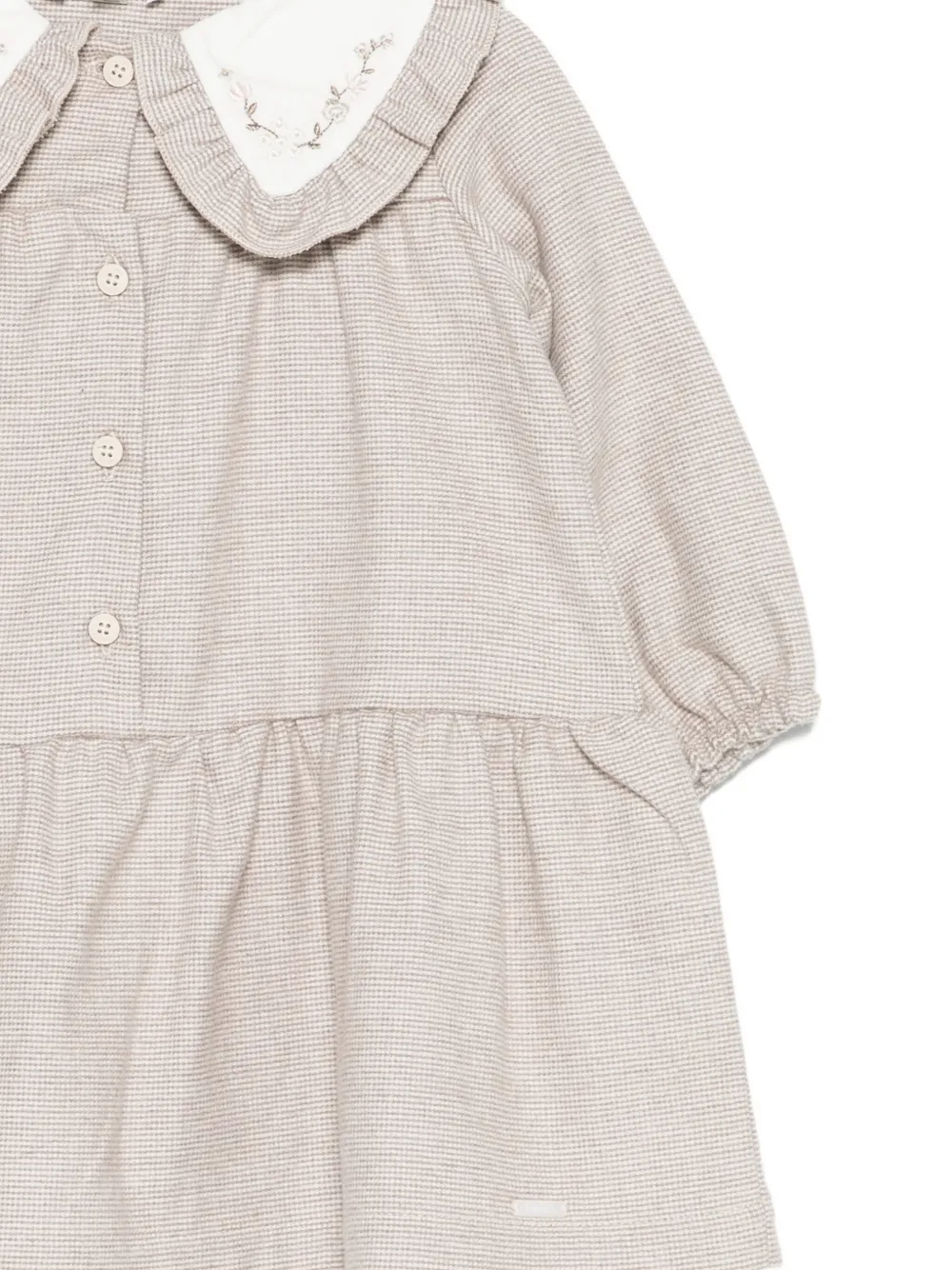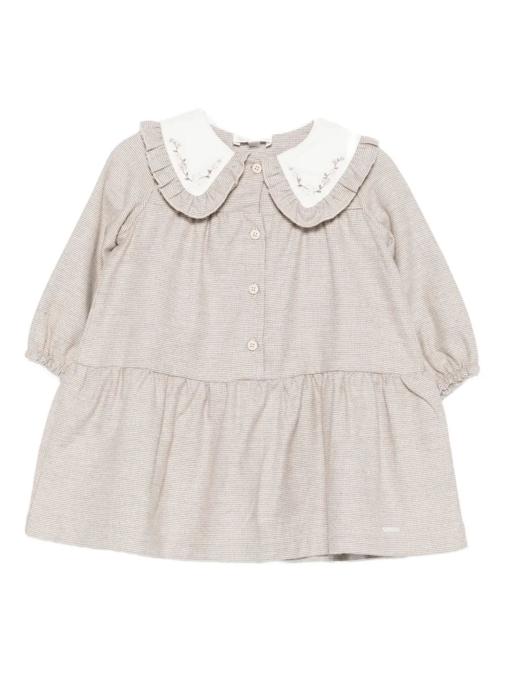 Светло-коричневый оборка на воротнике застежка на пуговицы спереди длинные рукава вышитые детали заниженная талия