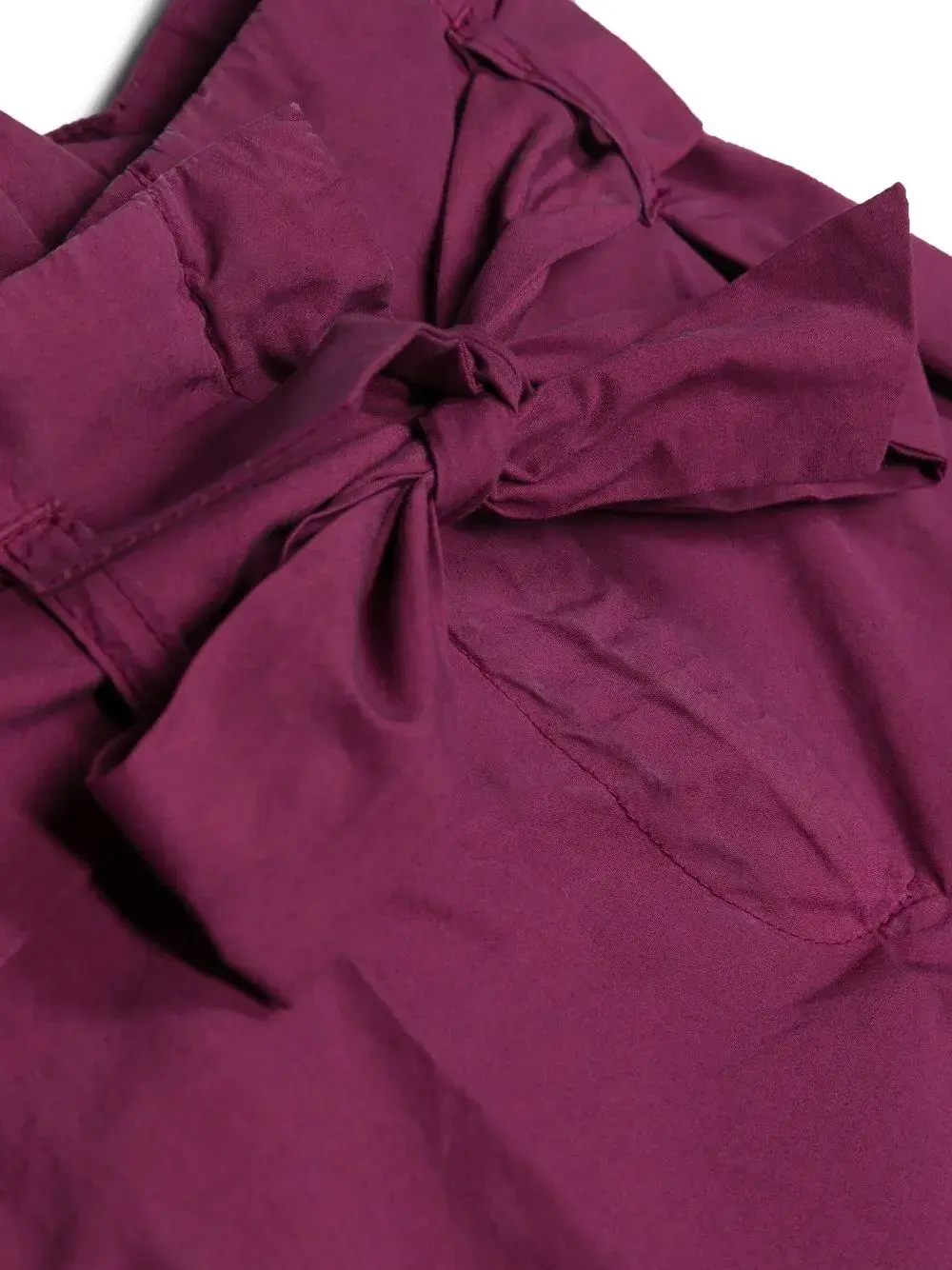 Фиолетовый, хлопок, вставка со сборками, завышенная талия, кулиска на талии, петли для ремня, складки и длина до бедер.