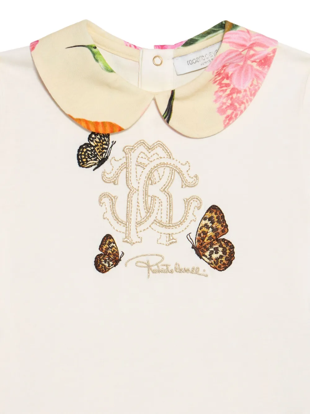 Футболка с вышивкой и воротником Roberto Cavalli Junior, белый
