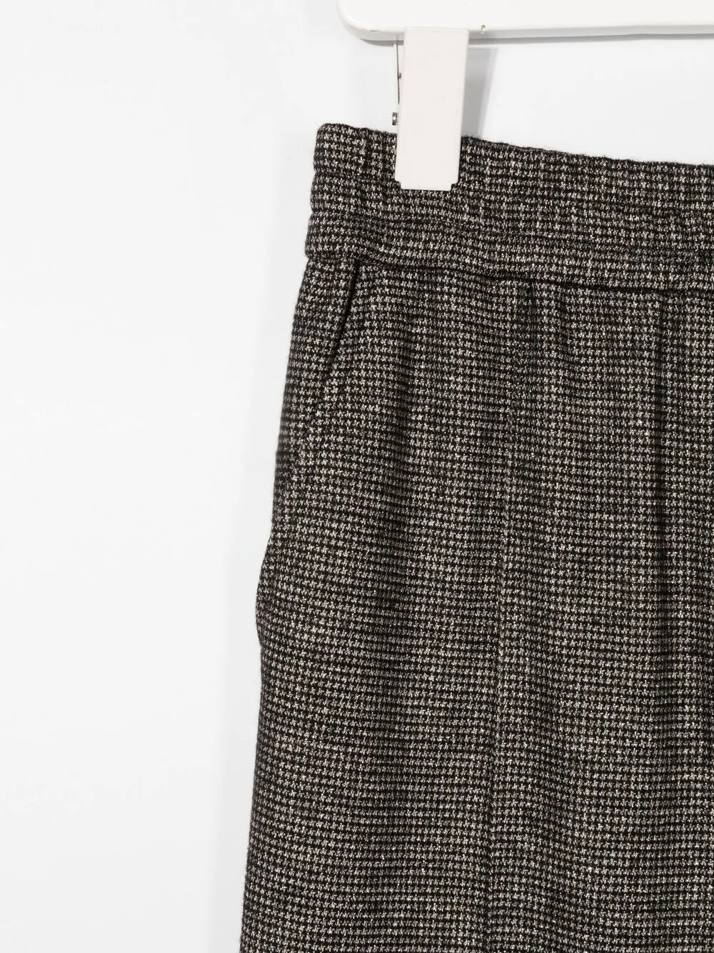 Люрекс, широкий крой, эластичный пояс, два вшитых кармана по бокам и два кармана с листочкой сзади.